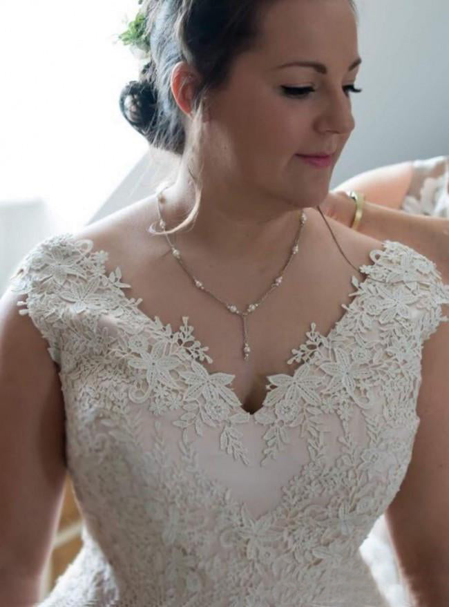 Open Back Tulle Floor-Length Lace V-neck Wedding Dress
