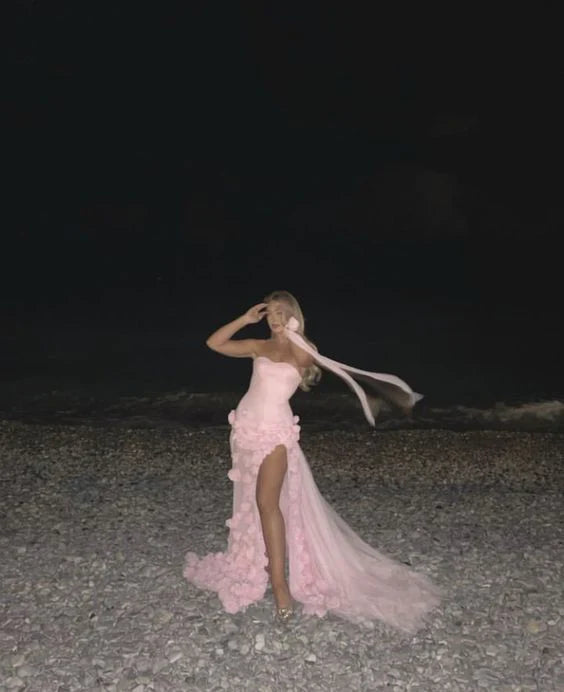 Elevate your prom look with this stunning Pink 3D Floral Mermaid Tulle Long Prom Dress. Delicately crafted with intricate floral details, this dress will make you stand out and turn heads. The mermaid silhouette hugs your curves while the tulle fabric adds a touch of whimsy. Perfect for making a memorable entrance at any special occasion.