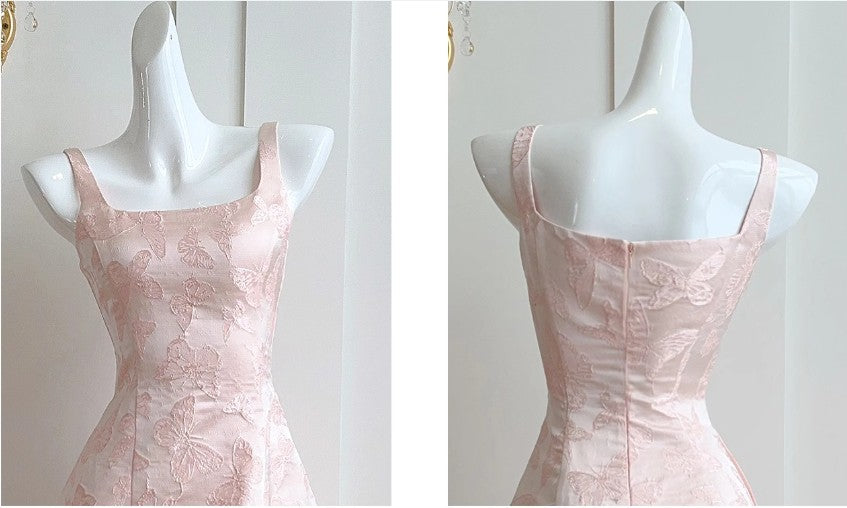 Pink A-Line Vintage Butterfly Embroidered Satin Prom Dress Birthday DressED01772