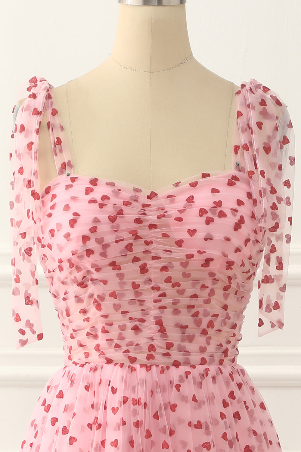 Pink Tulle Spaghetti Straps Prom Dress