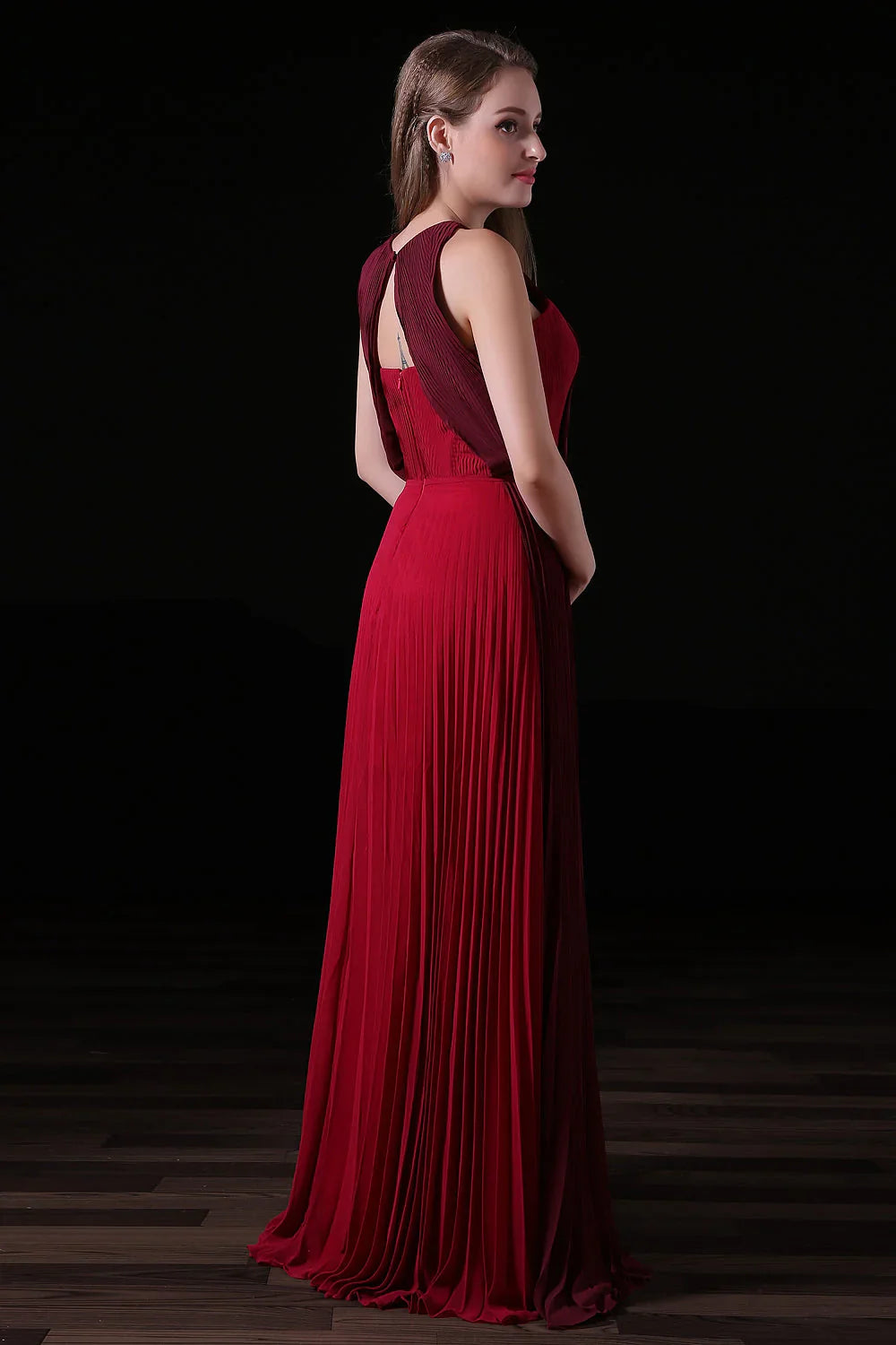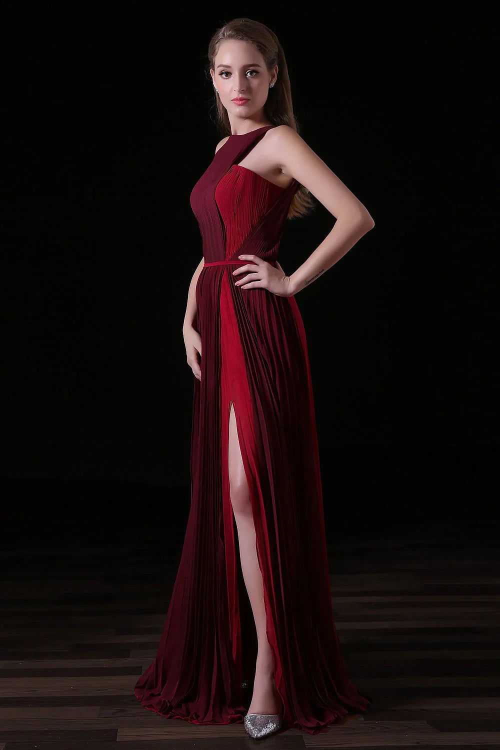 Pleat Draped Side Slit Off Shoulder Zipper Burgundy Bridesmaid Dresses
