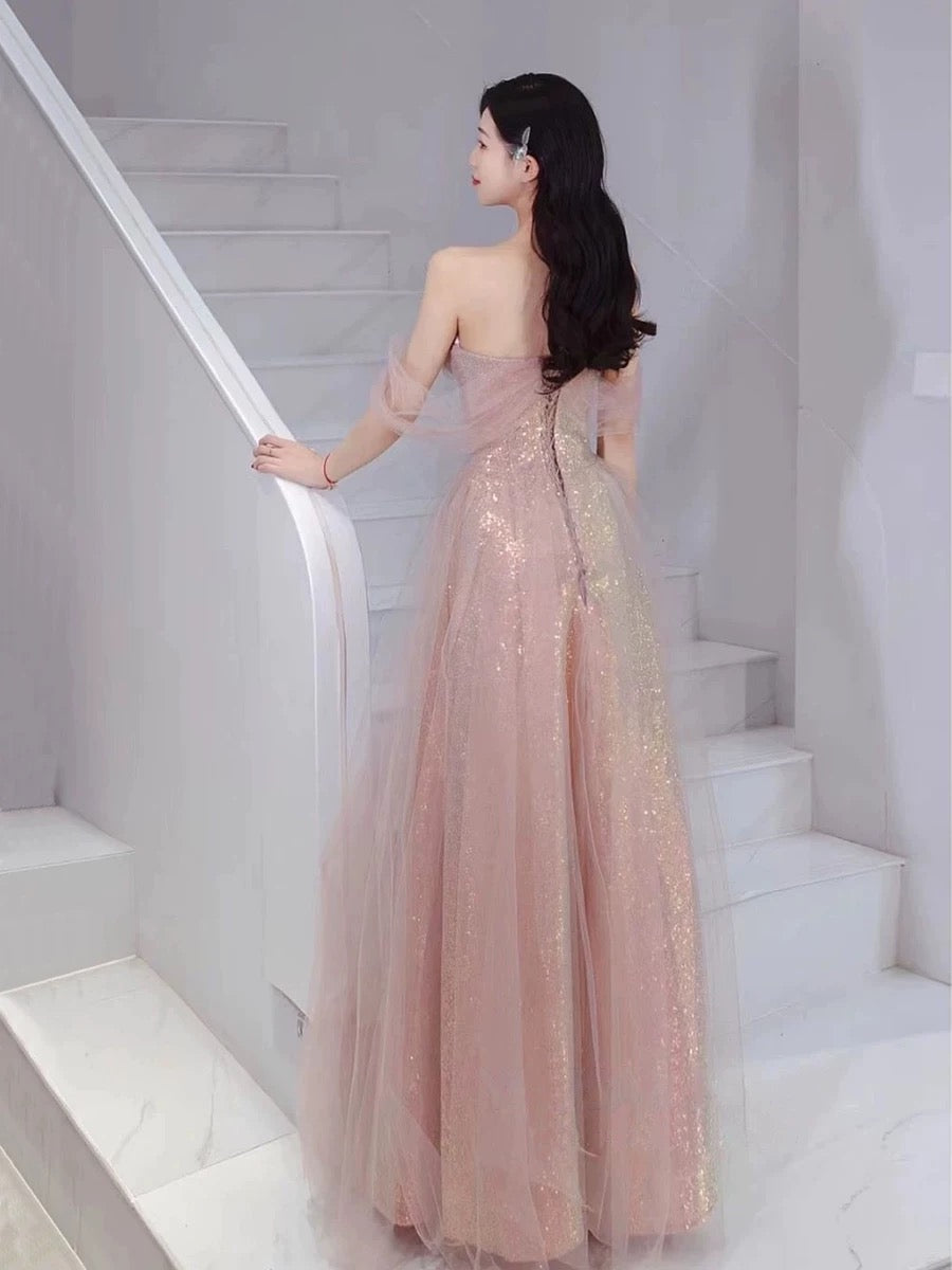 Pretty A Line Sweetheart Pink Sequin Long Length Evening Dress Prom Dresses SD2776