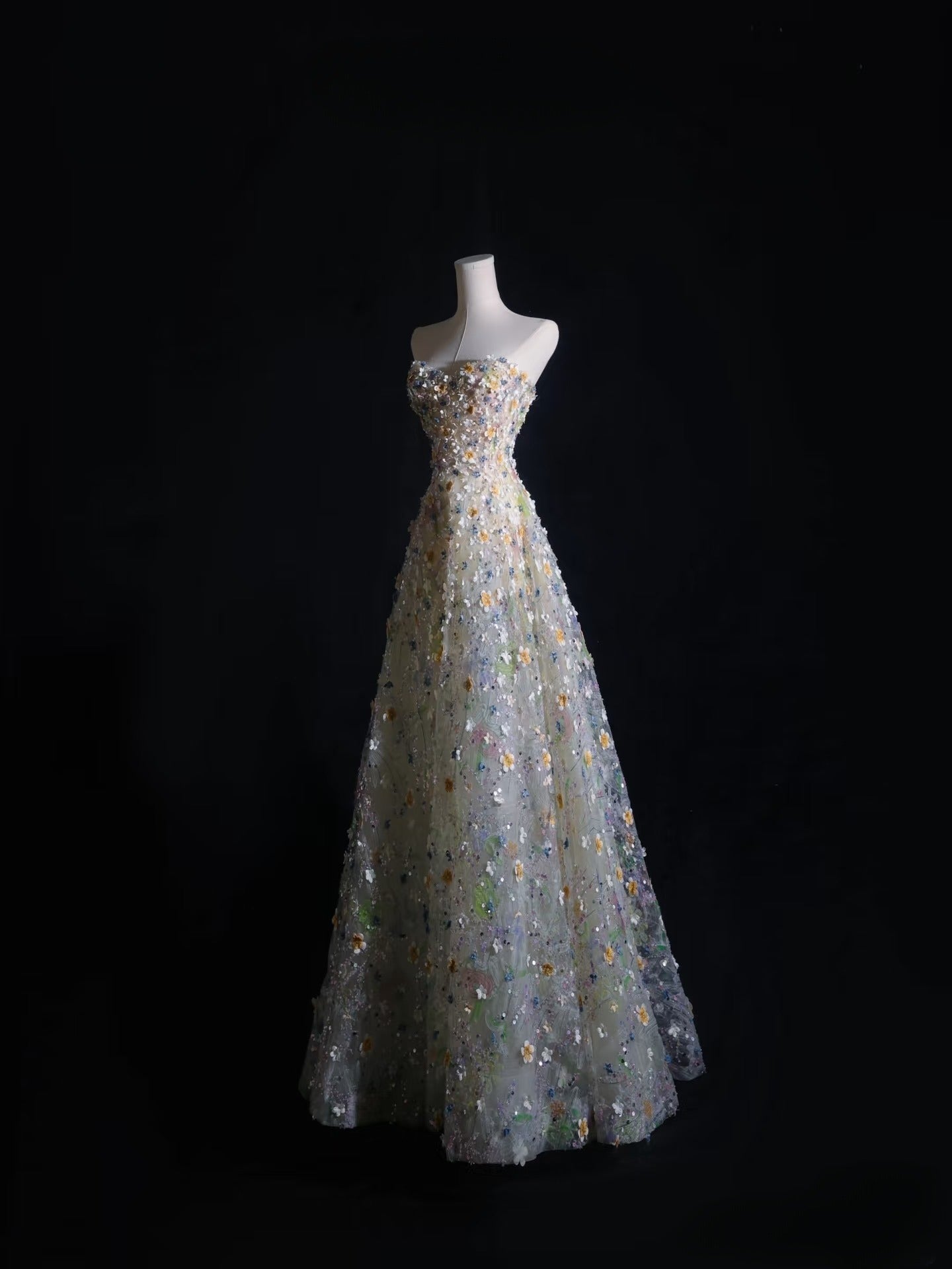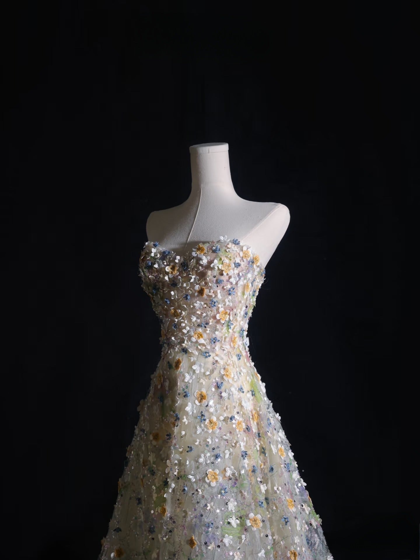 Pretty A line Sweetheart Tulle Floral Long Prom Dresses Evening Gowns SD2332