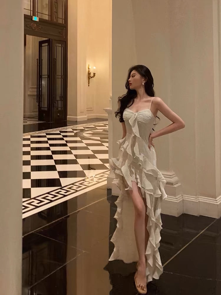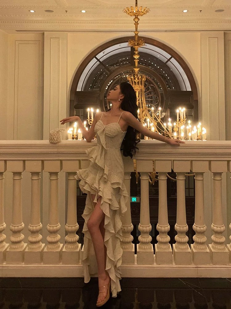 Pretty High Low Spaghetti Straps Ruffles Prom Dresses Birthday Outfits SD591