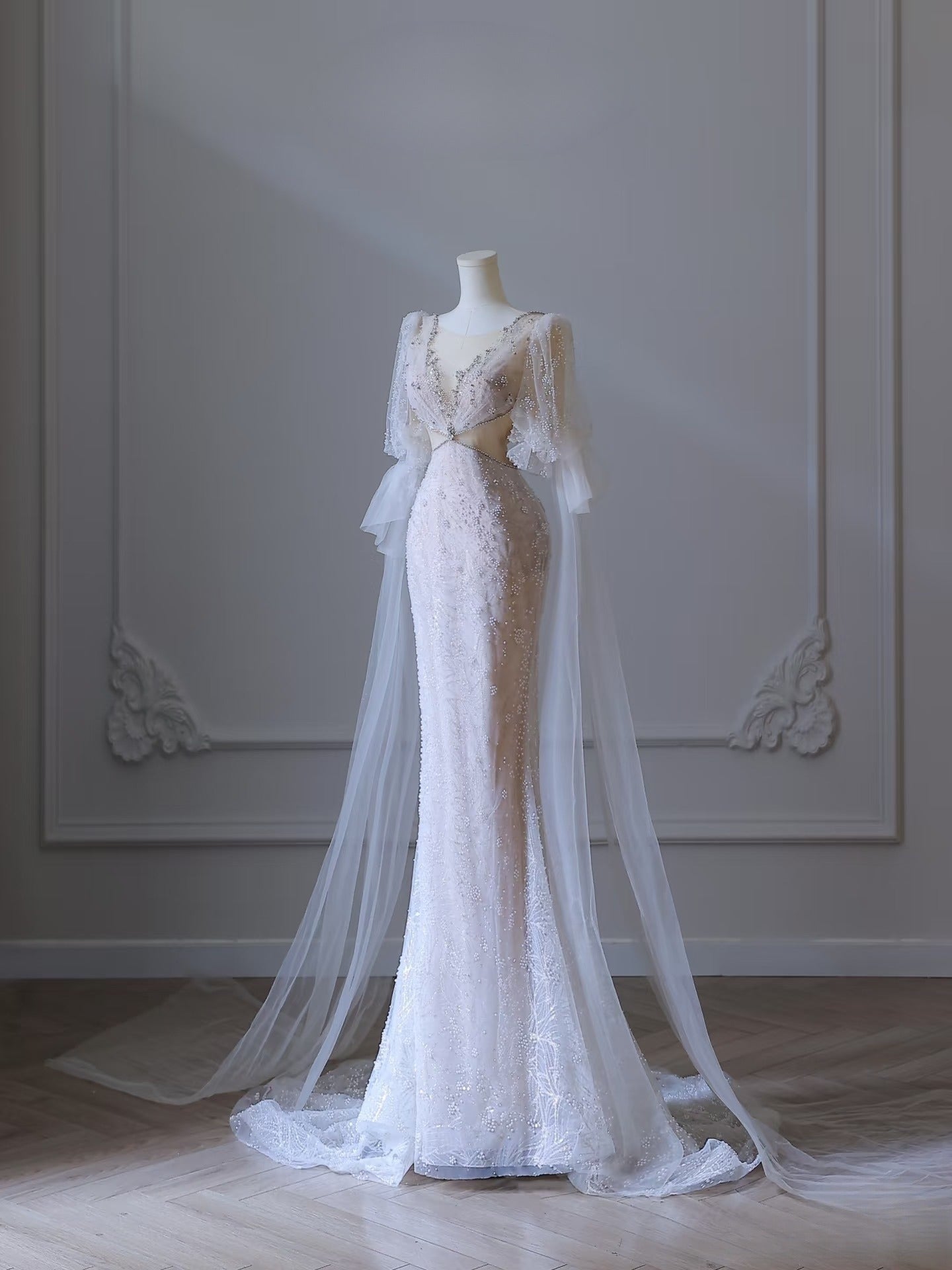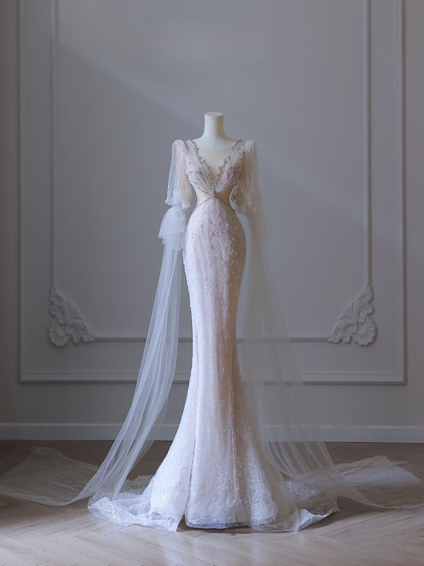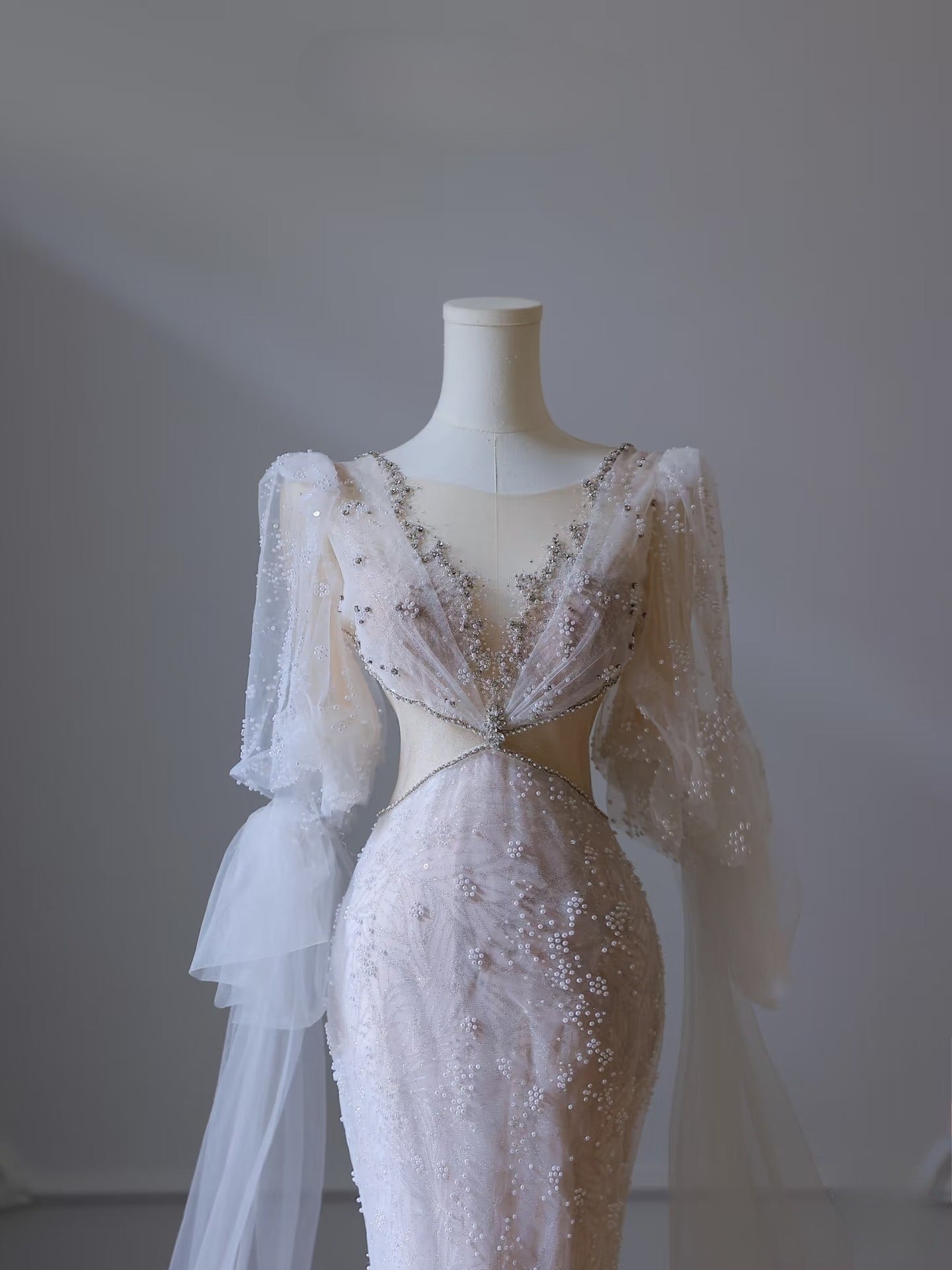 Silhouette: Mermaid/Trumpet Actual Images: No Sleeve Length(cm): Full Origin: CN(Origin) Decoration: Appliques Decoration: Beading Item Type: Mother of the Bride Dresses Sleeve Style: Regular Fabric Type: Tulle is_customized: Yes Built-in Bra: Yes Fashion Element: Simple