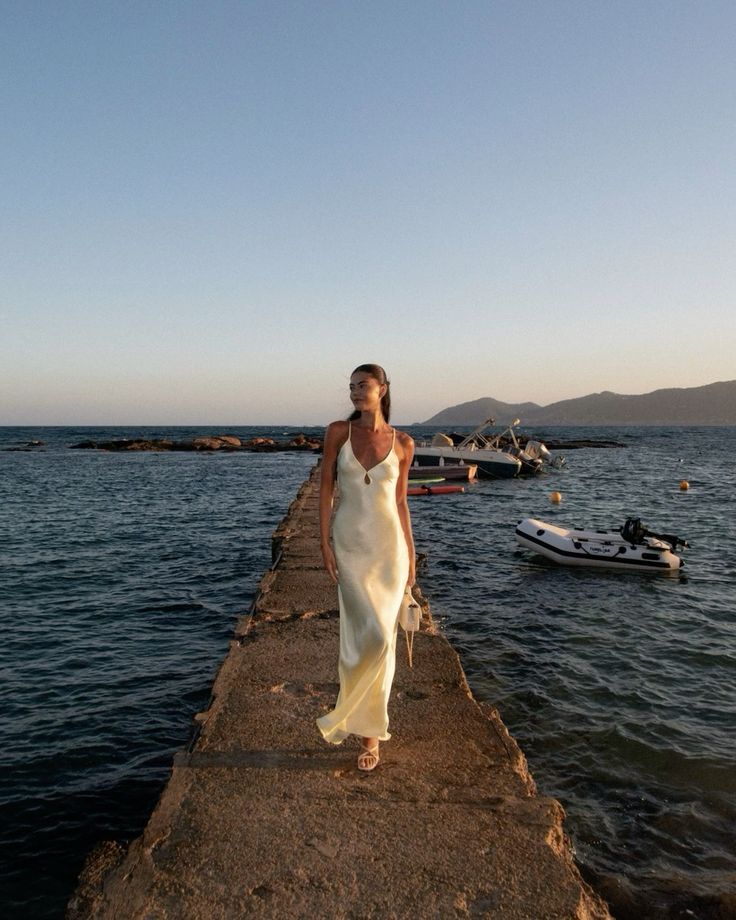 Women’s Long Satin Prom Dresses Spaghetti Straps Bridesmaid Dresses Formal Dress Ball Gowns with Slit - White