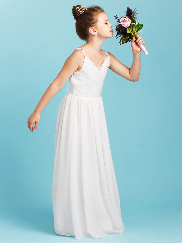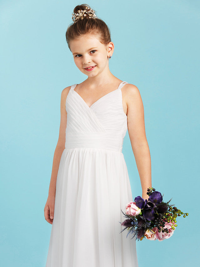 Princess A-Line Spaghetti Strap Chiffon Flower Girl Dress With Sash for Weddings