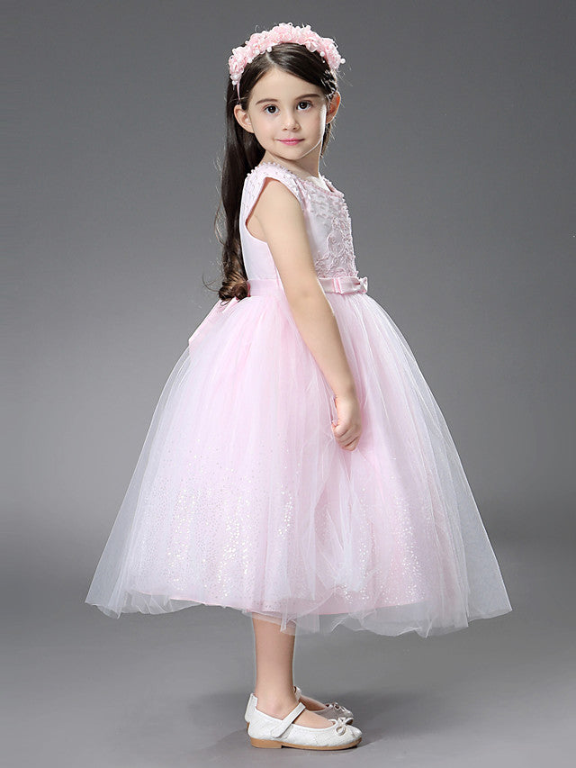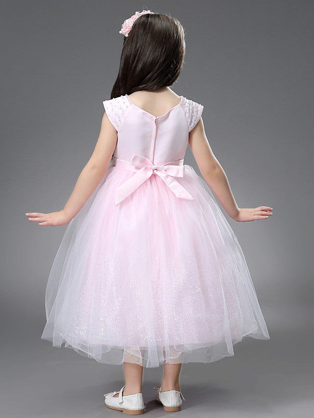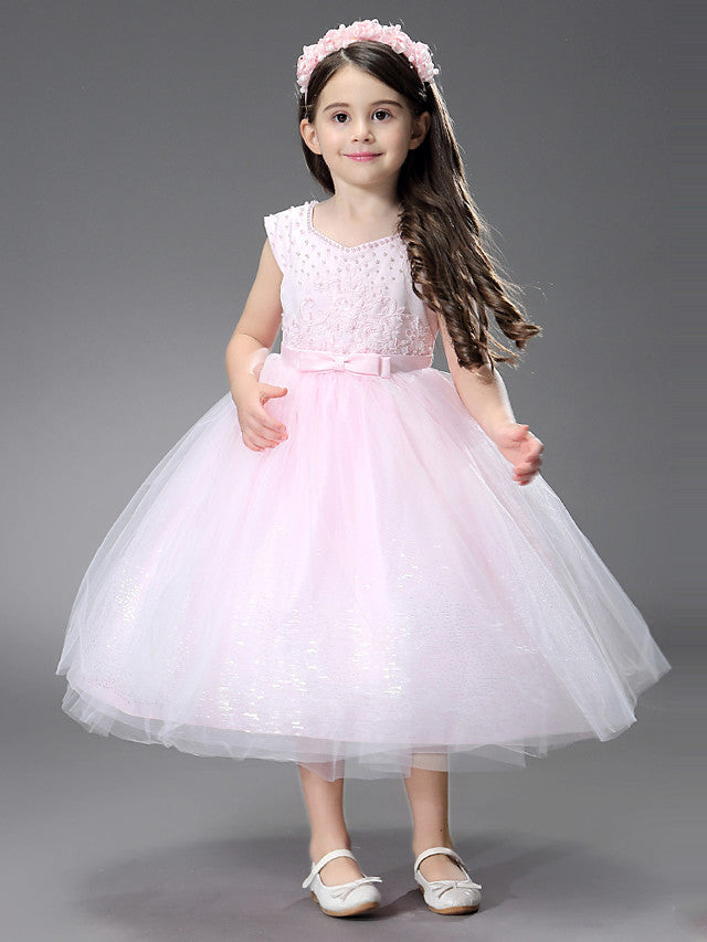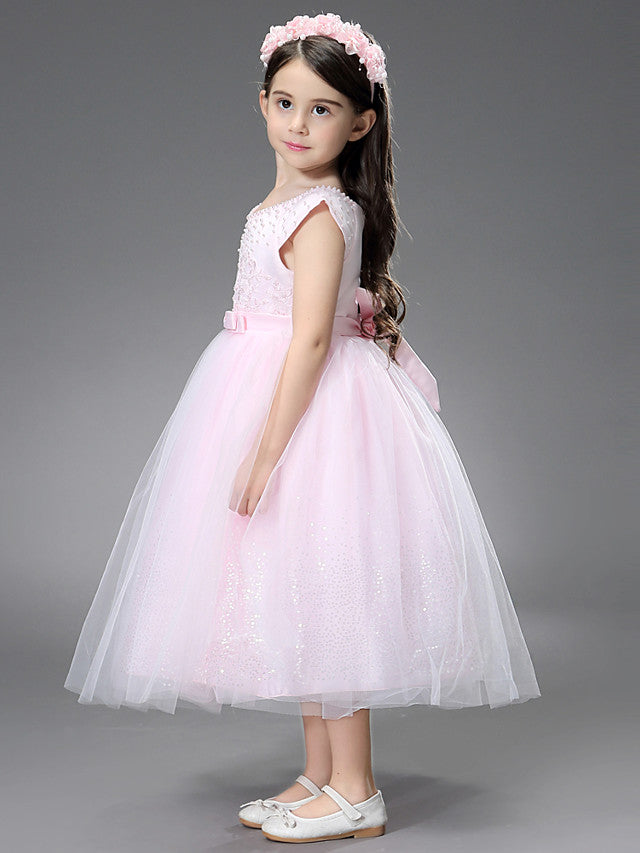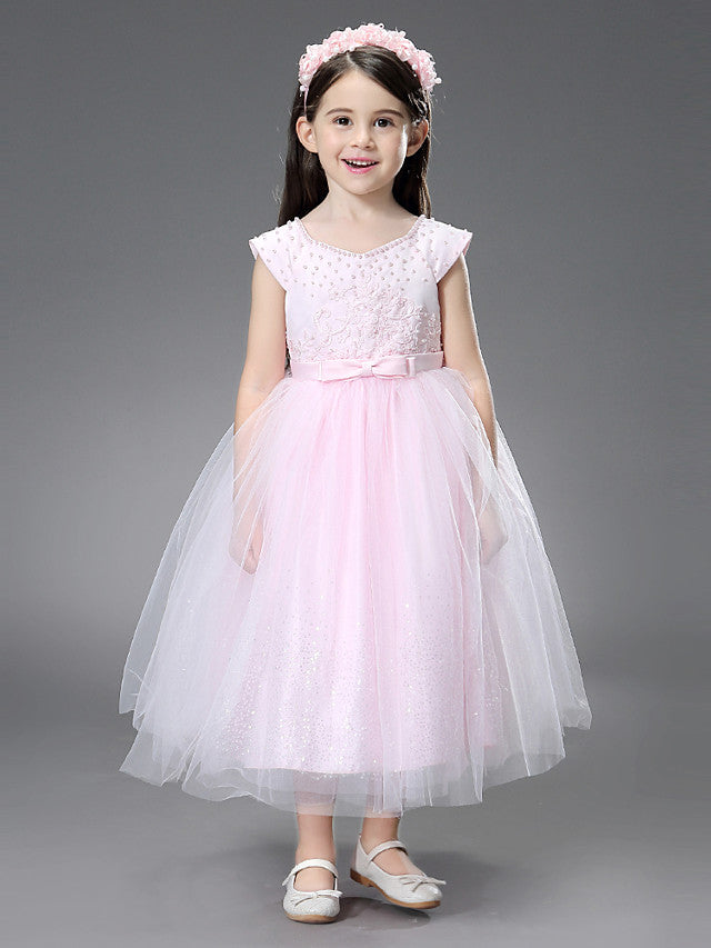 Princess Ankle Length Dresses with Beading Appliques for Flower Girls