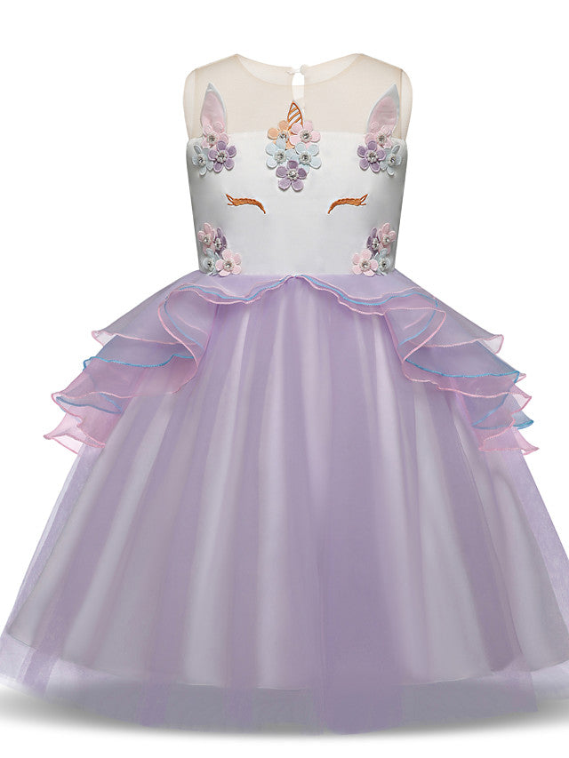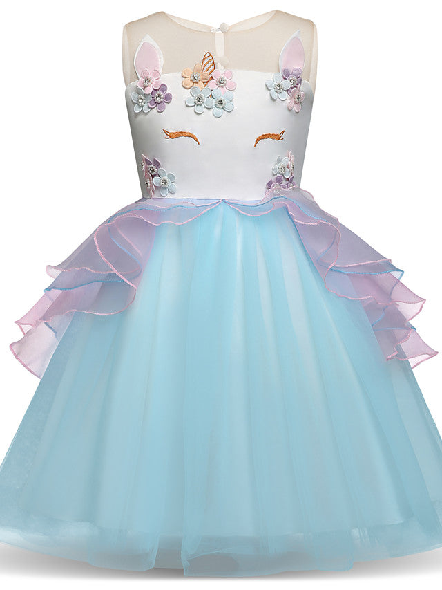 Princess Midi Party Dress ¡§C Satin Tulle Embroidery & Appliques