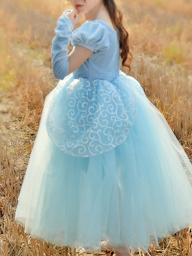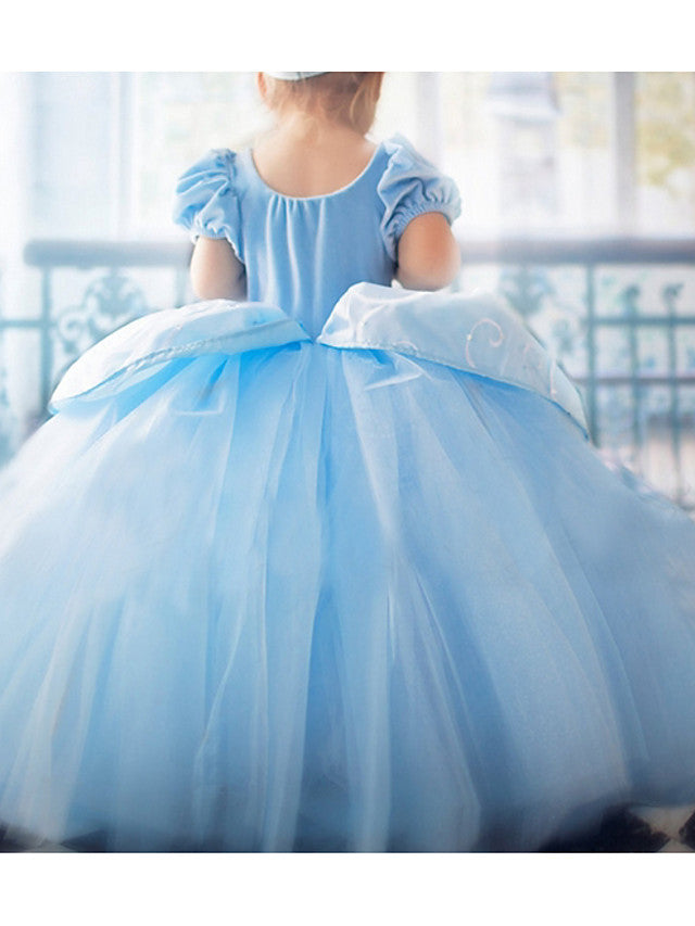 Princess Short Sleeve Flower Girl Dress Cotton With Beading Appliques & Paillette