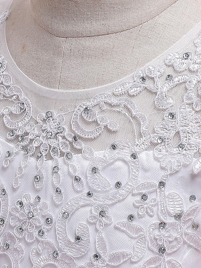 Princess Tulle Sleeveless Jewel Flower Girl Dress with Bow Appliques Beading