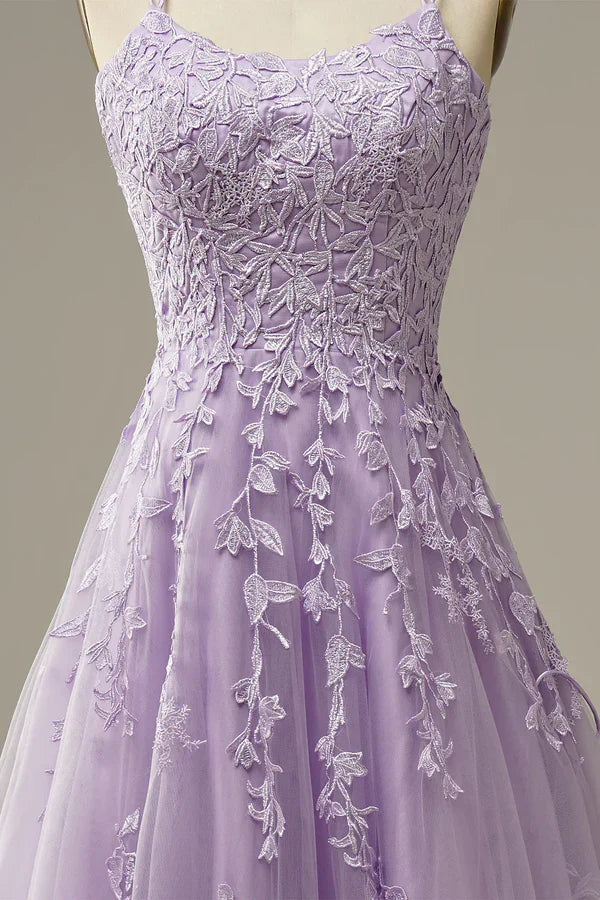 Prom Dresses Floral Dress Formal Chapel Train Sleeveless Spaghetti Strap Tulle with Appliques