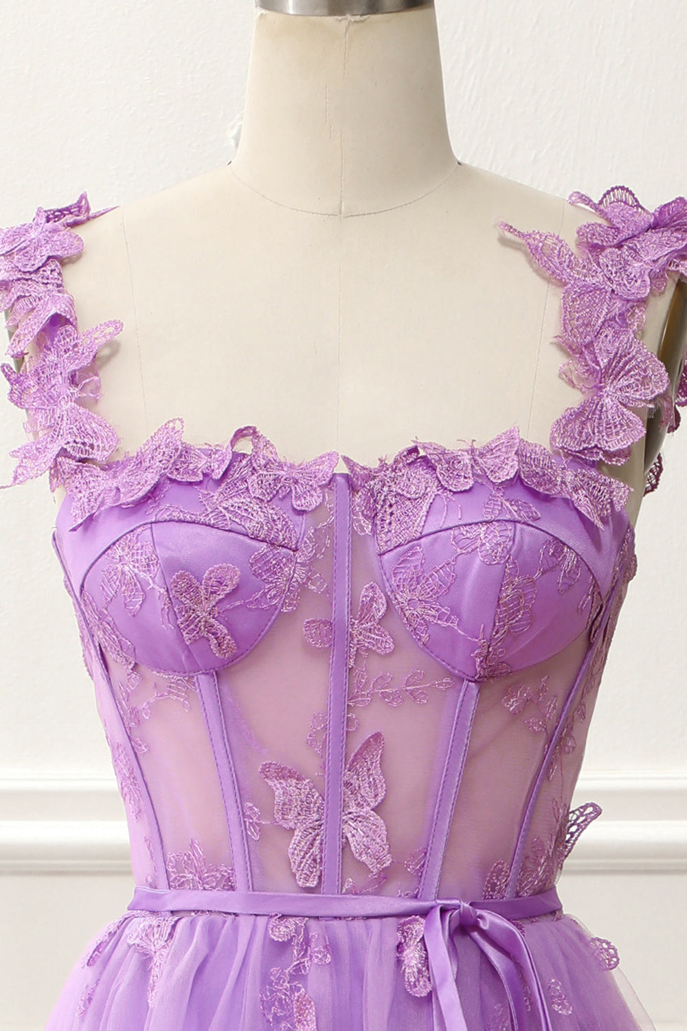 Purple A-Line Corset Knee-Length Prom Dress With Butterflies