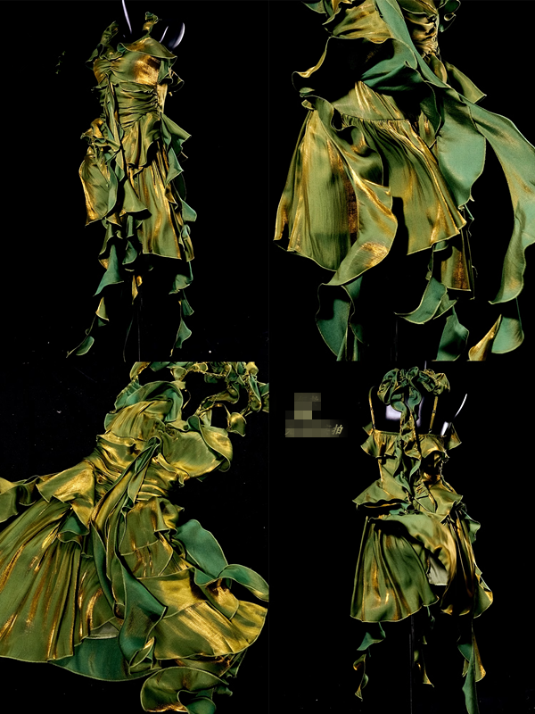 Retro High Low Irregular Spaghetti Straps Green Short Birthday Dresses Birthday Outfits With Train SD493
