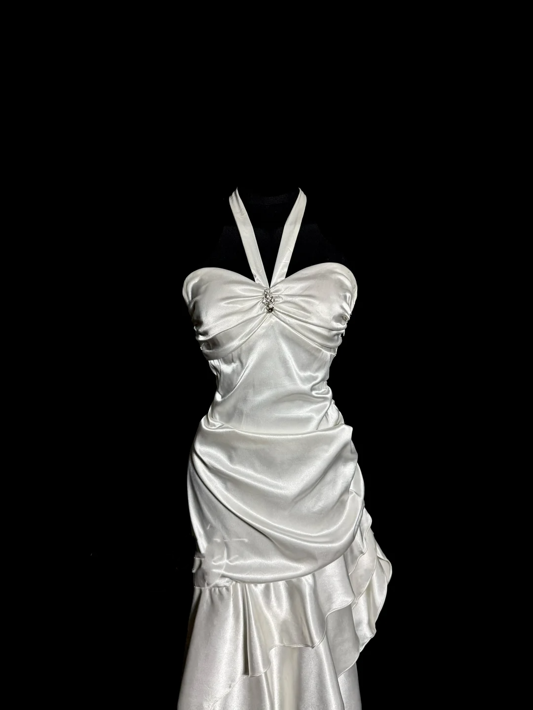 Retro Mermaid Halter Satin High Low Evening Dress Prom Dresses SD2915