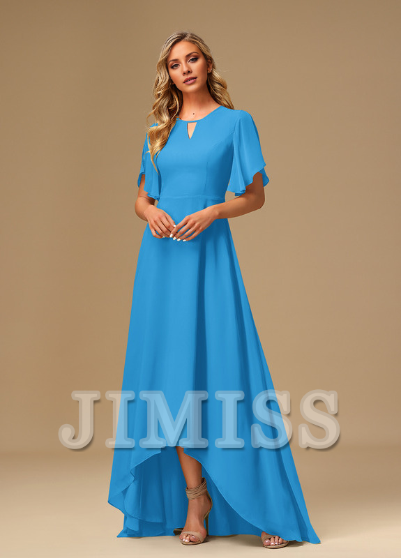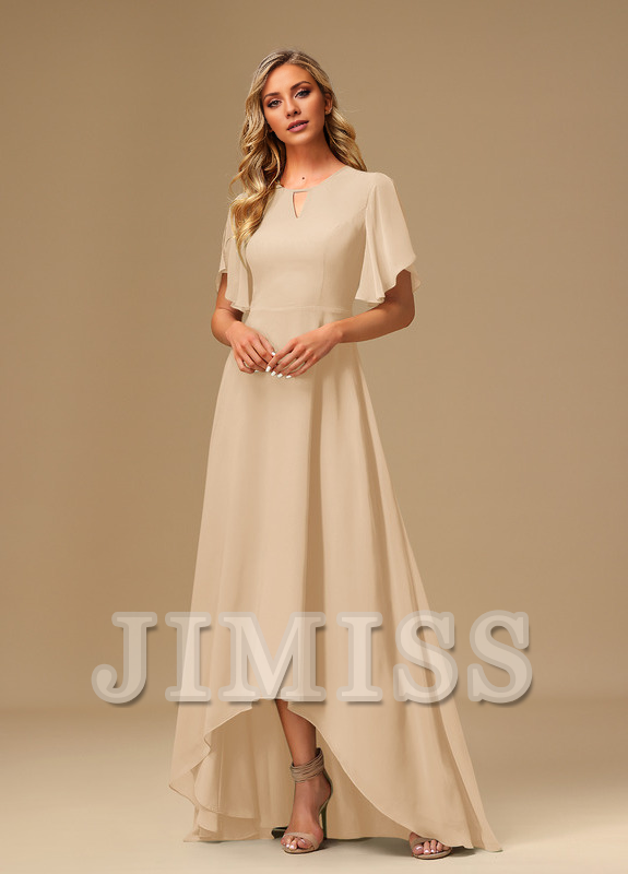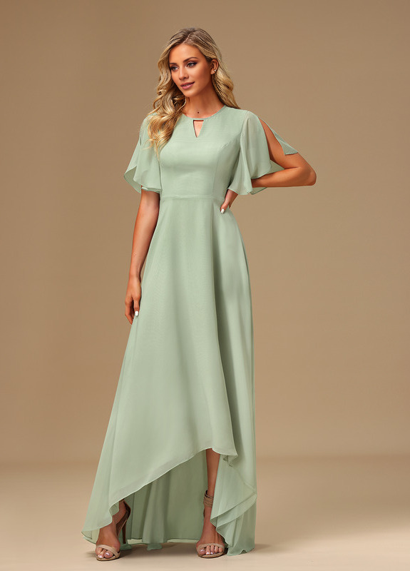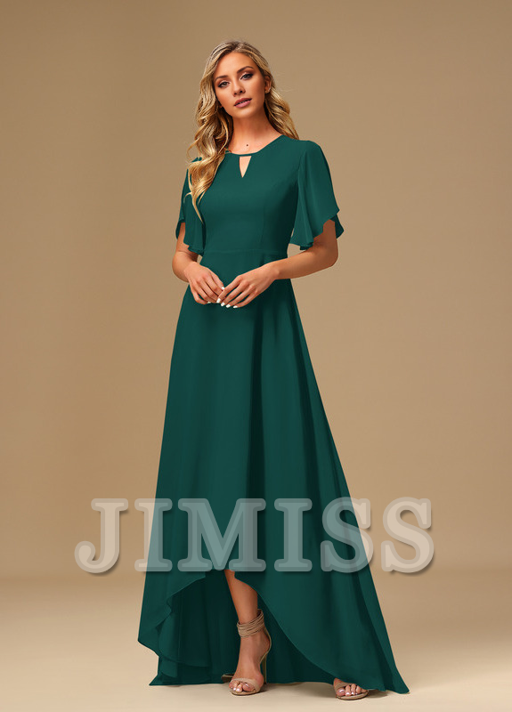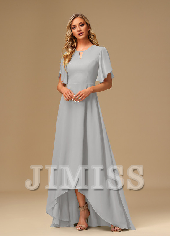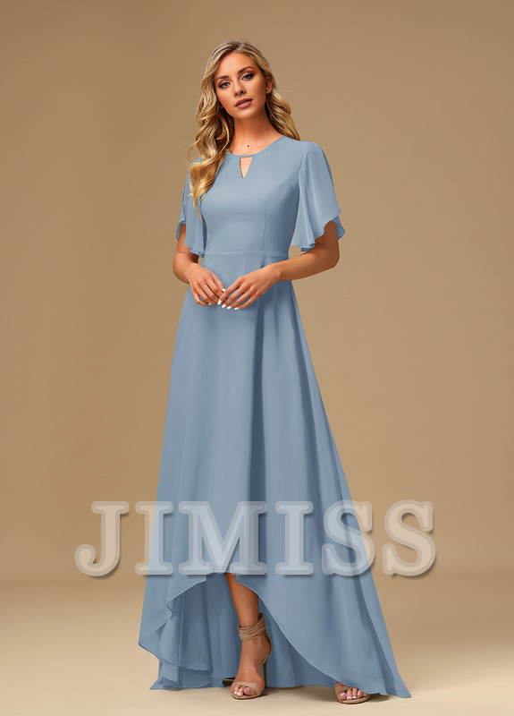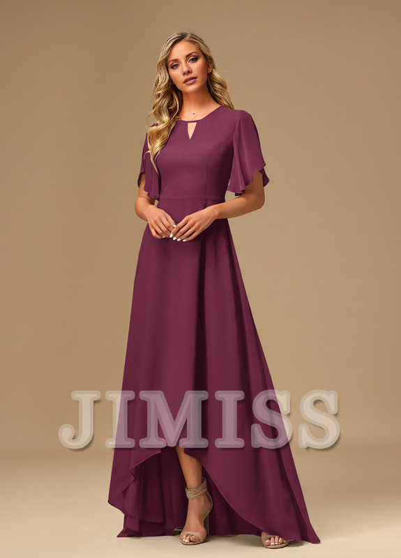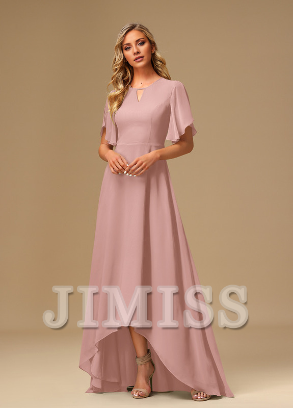 Ruffled A-line Boat Neck Asymmetric Chiffon Bridesmaids Dress
