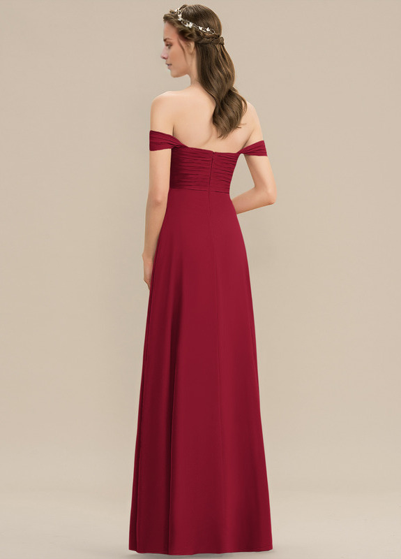 Ruffled A-line Off-the-shoulder Floor-length Chiffon Bridesmaids Dress
