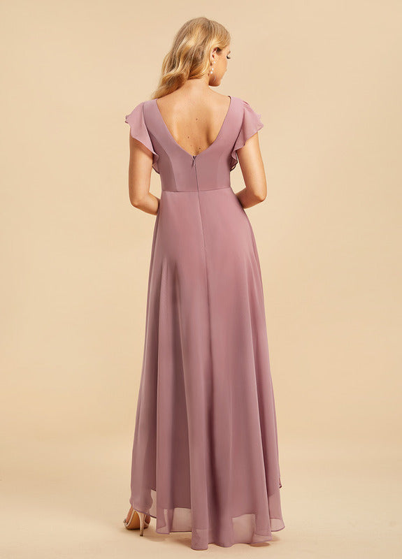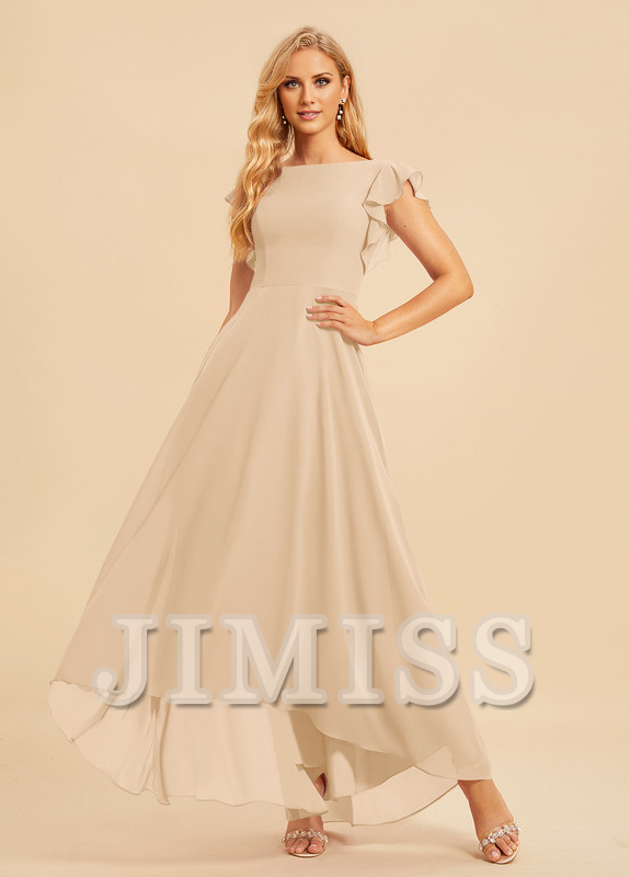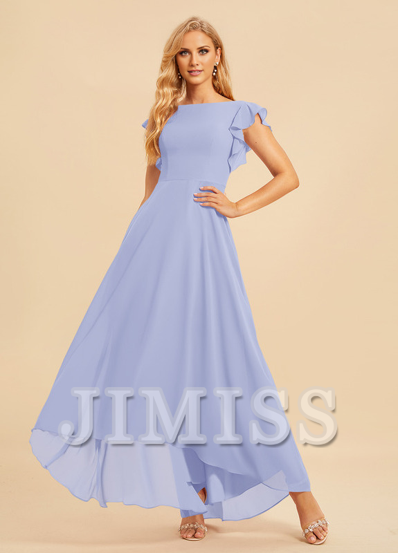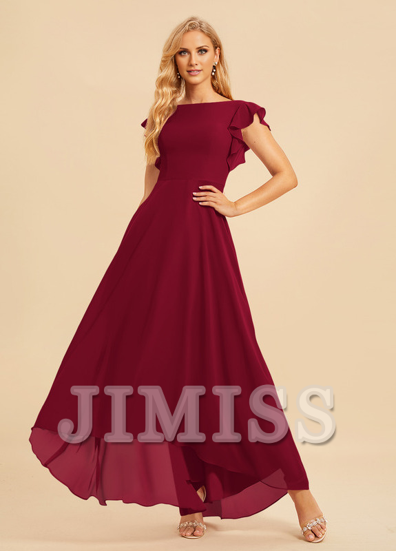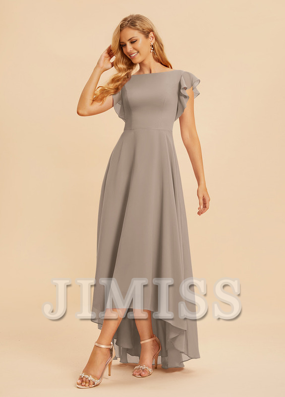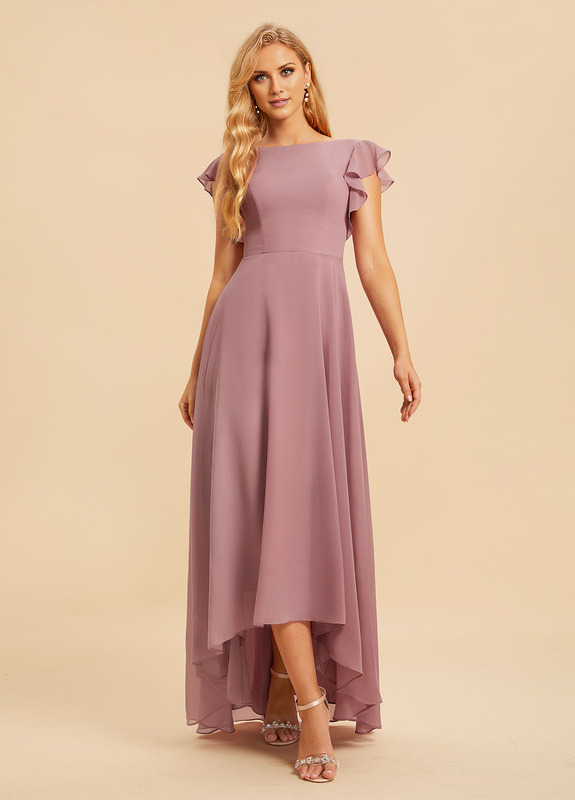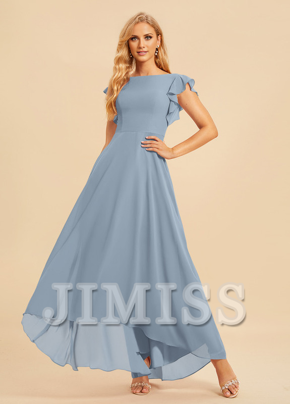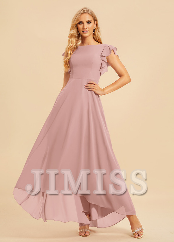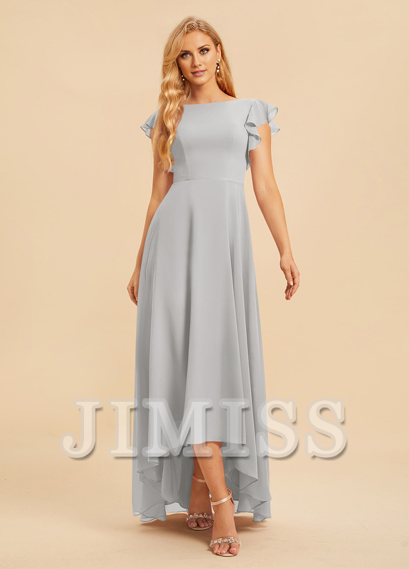 Ruffled A-line Scoop Asymmetric Chiffon Bridesmaids Dress