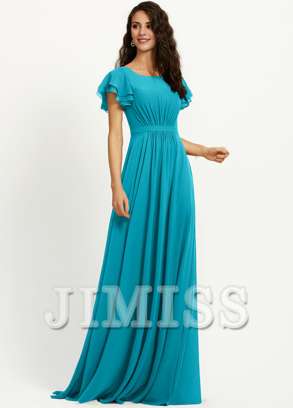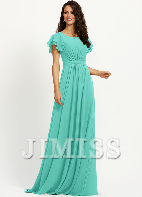 Ruffled A-line Scoop Neck Chiffon Bridesmaids Dress