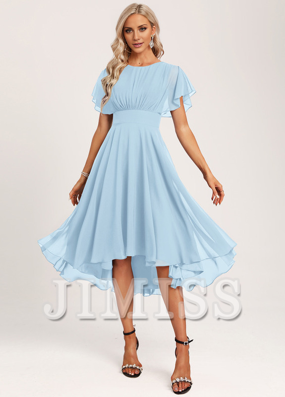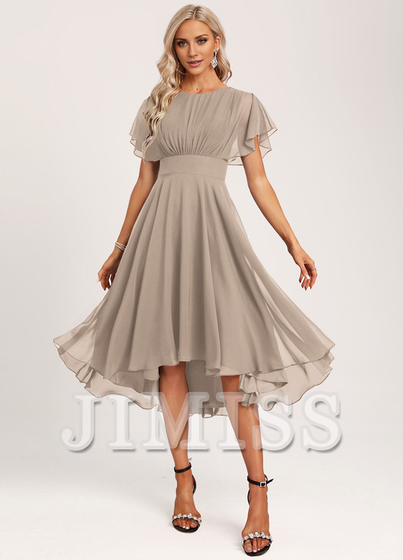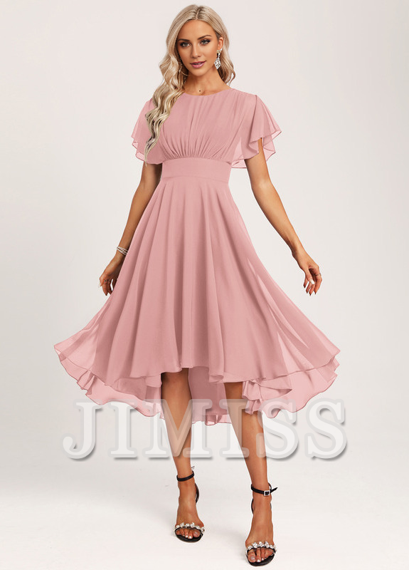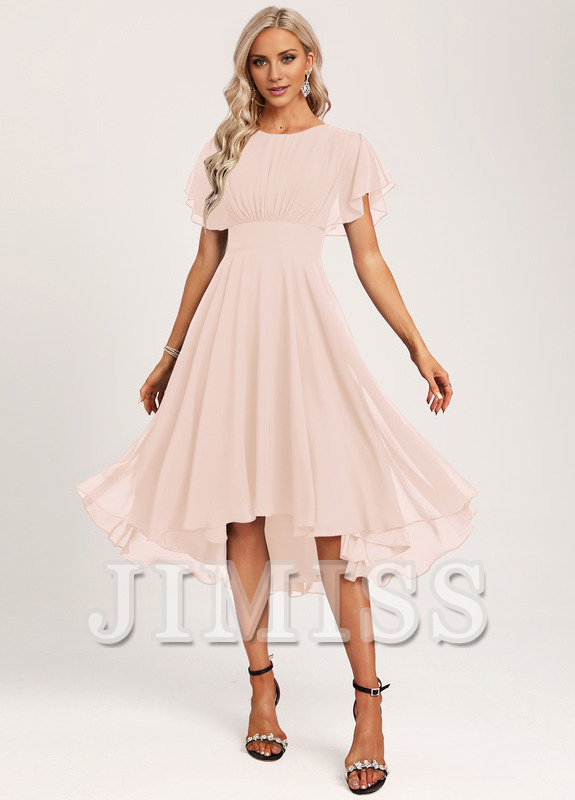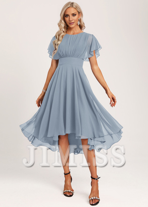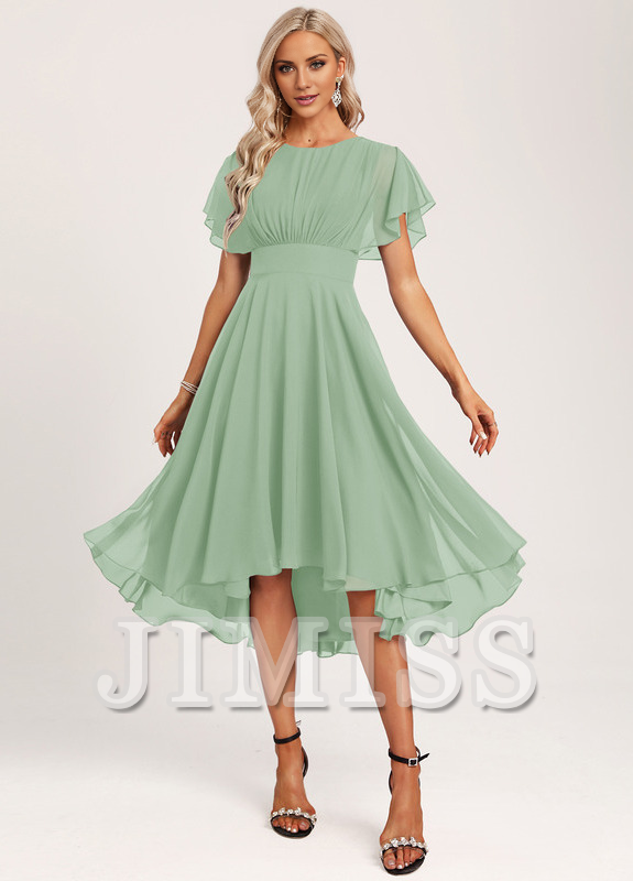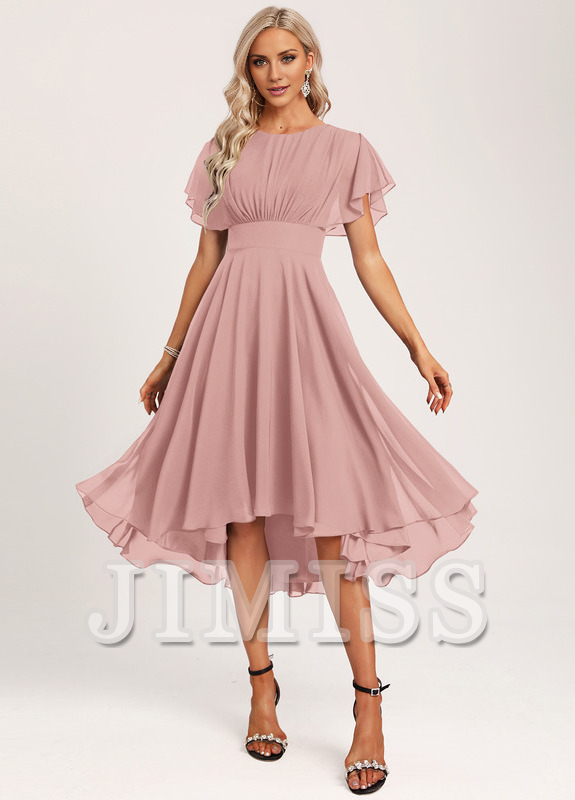 Ruffled A-line Spoon Asymmetric Chiffon Bridesmaids Dress