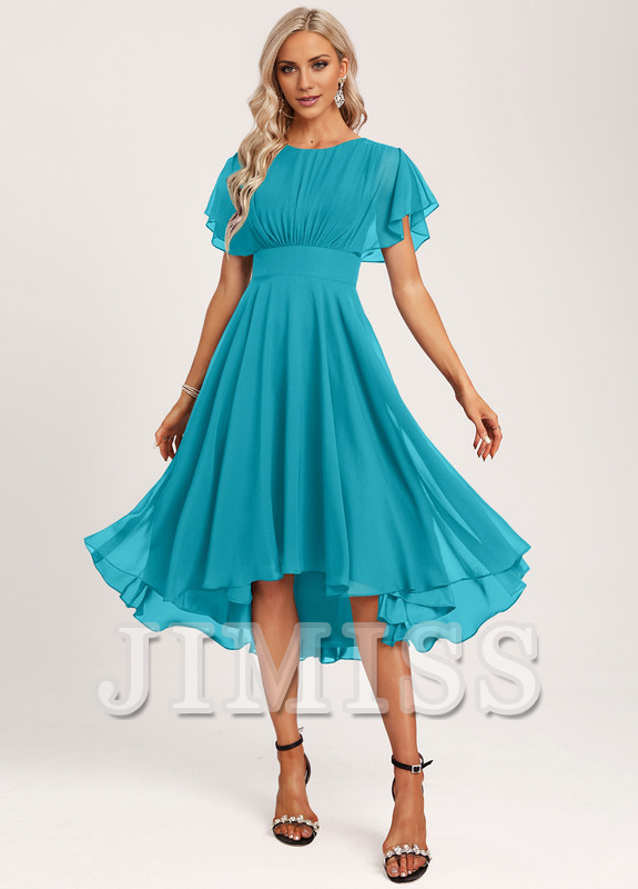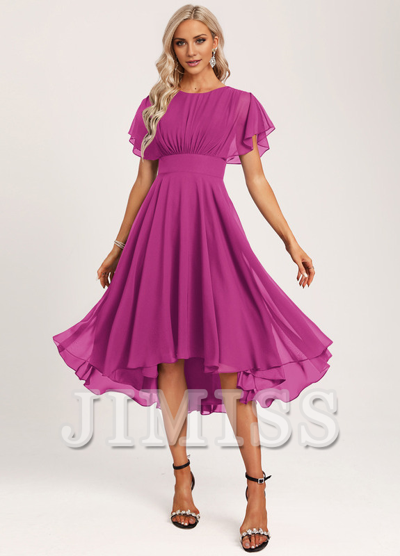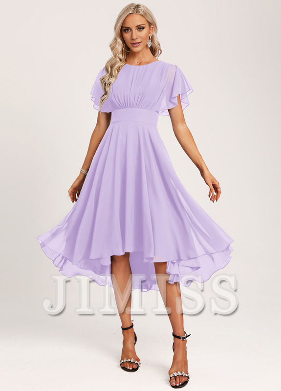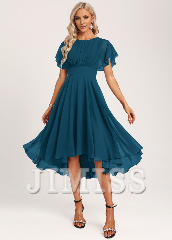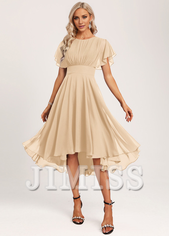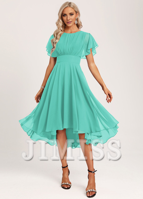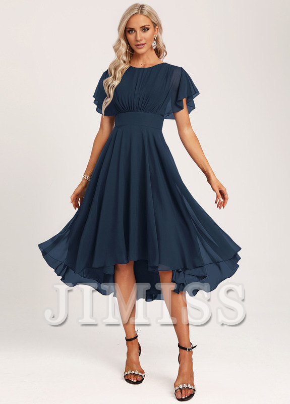 Ruffled A-line Spoon Asymmetric Chiffon Bridesmaids Dress