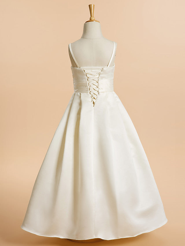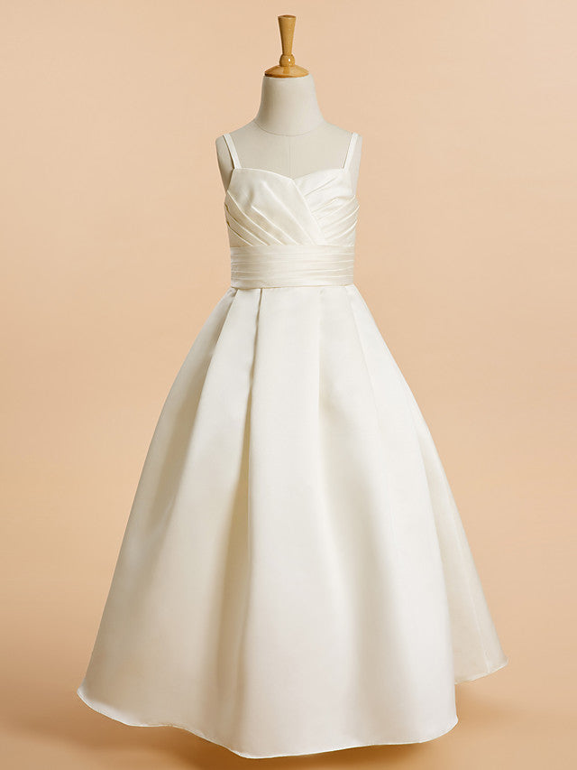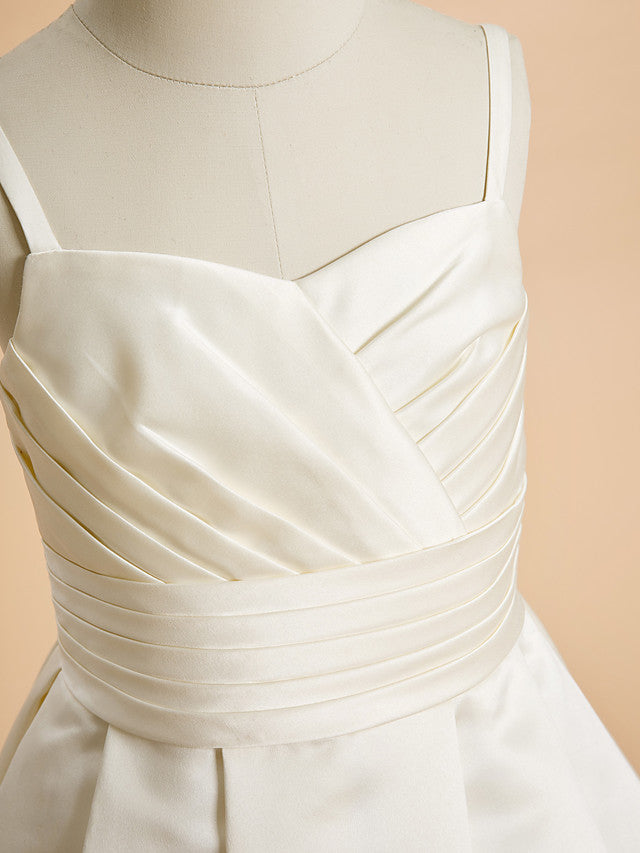 Satin A-Line Flower Girl Dress with Sleeveless Spaghetti Strap and Sash Ribbon