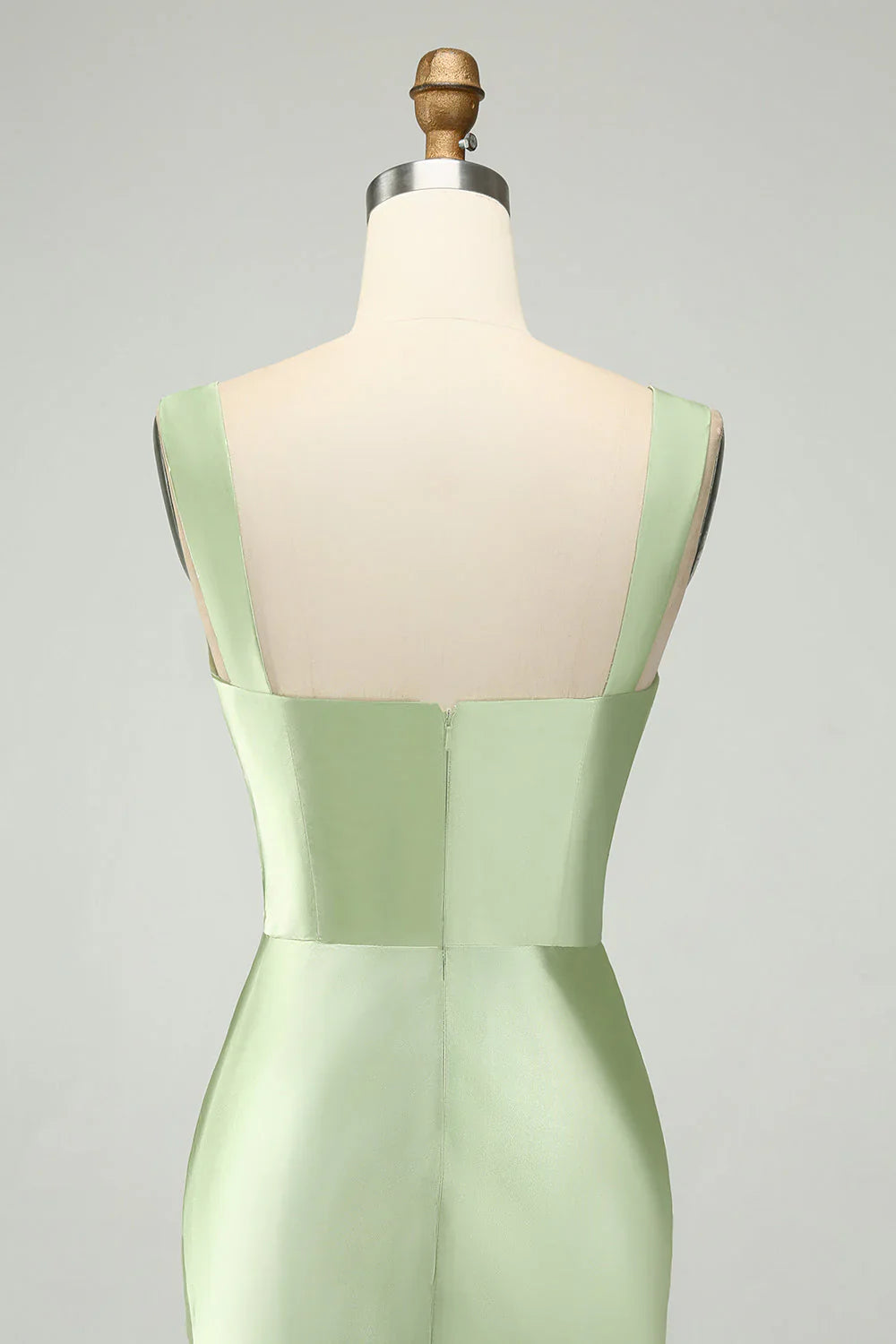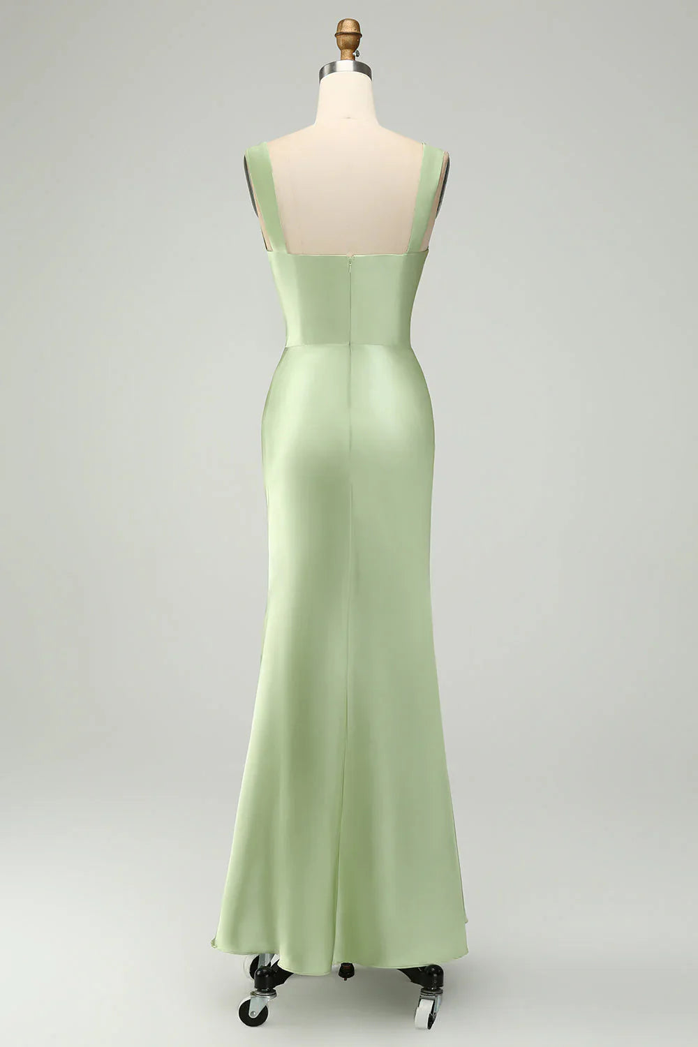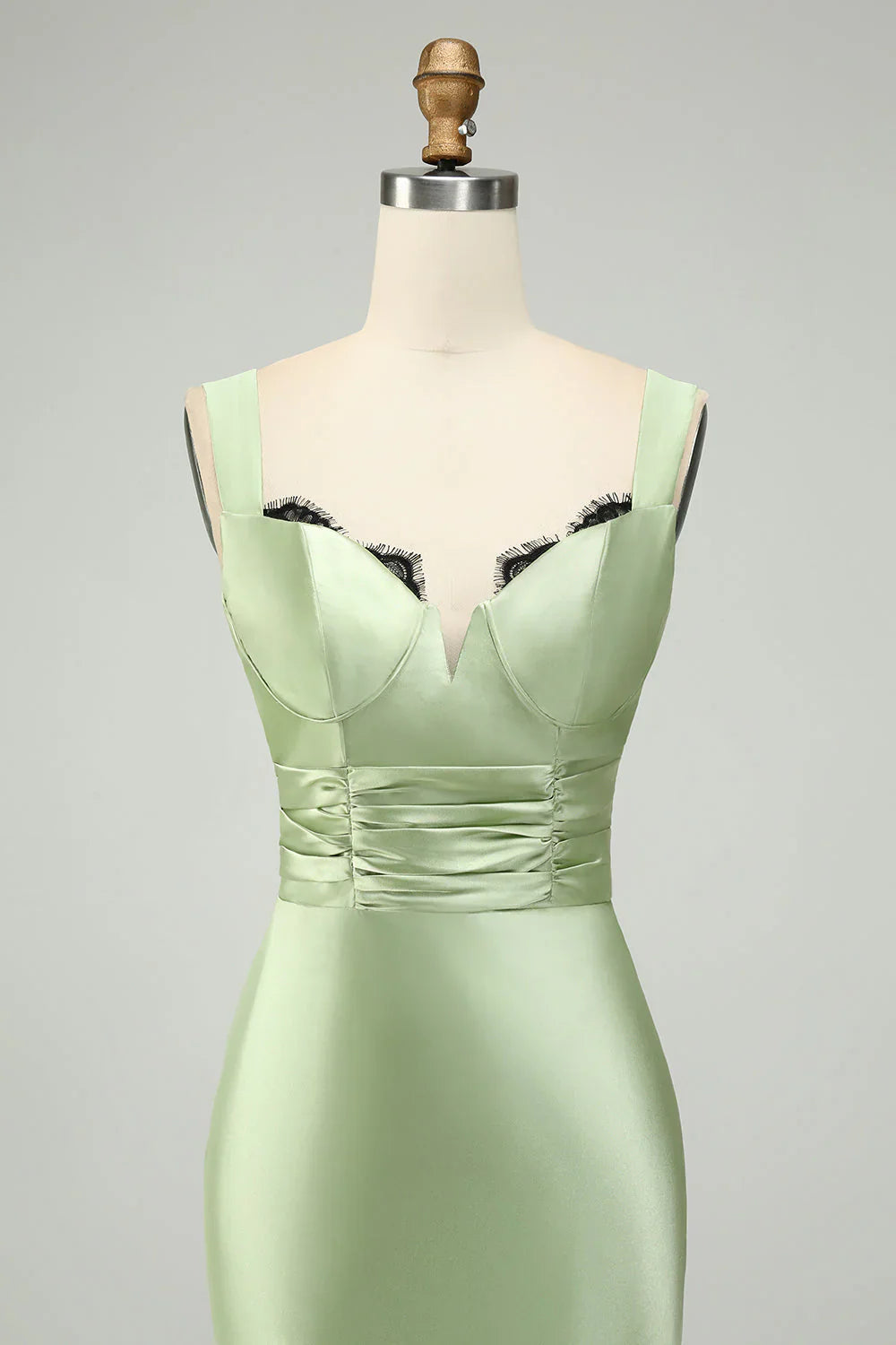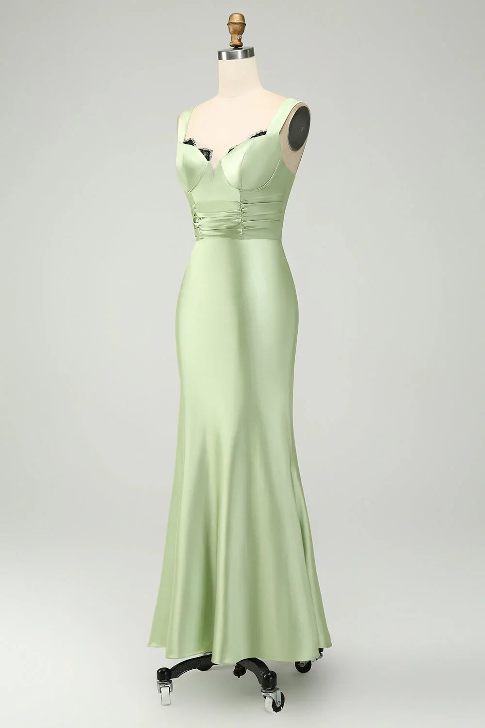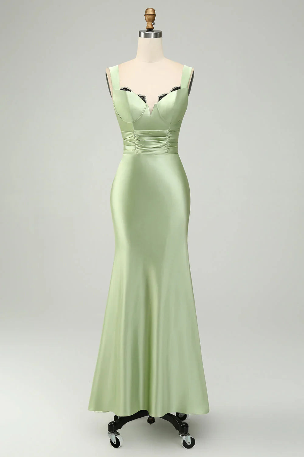 Satin Mermaid Long Bridesmaid Dress With Eyelash Lace