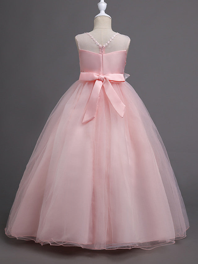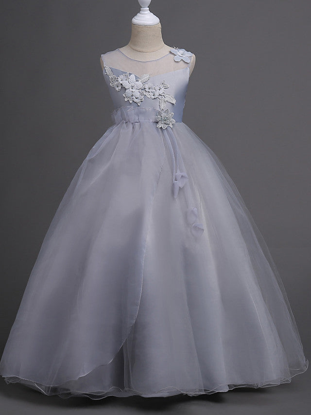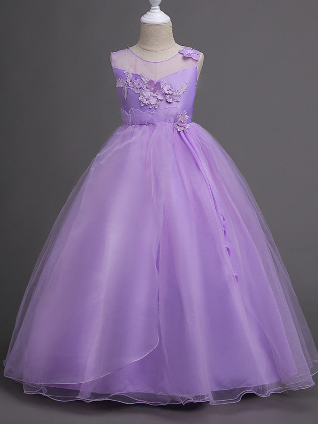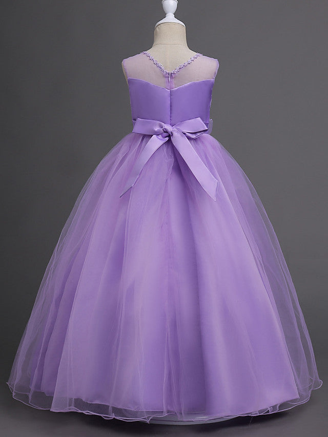 Satin Tulle Flower Girl Dress for Special Occasions - Princess Long Length with Belt Appliques
