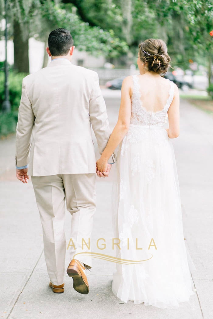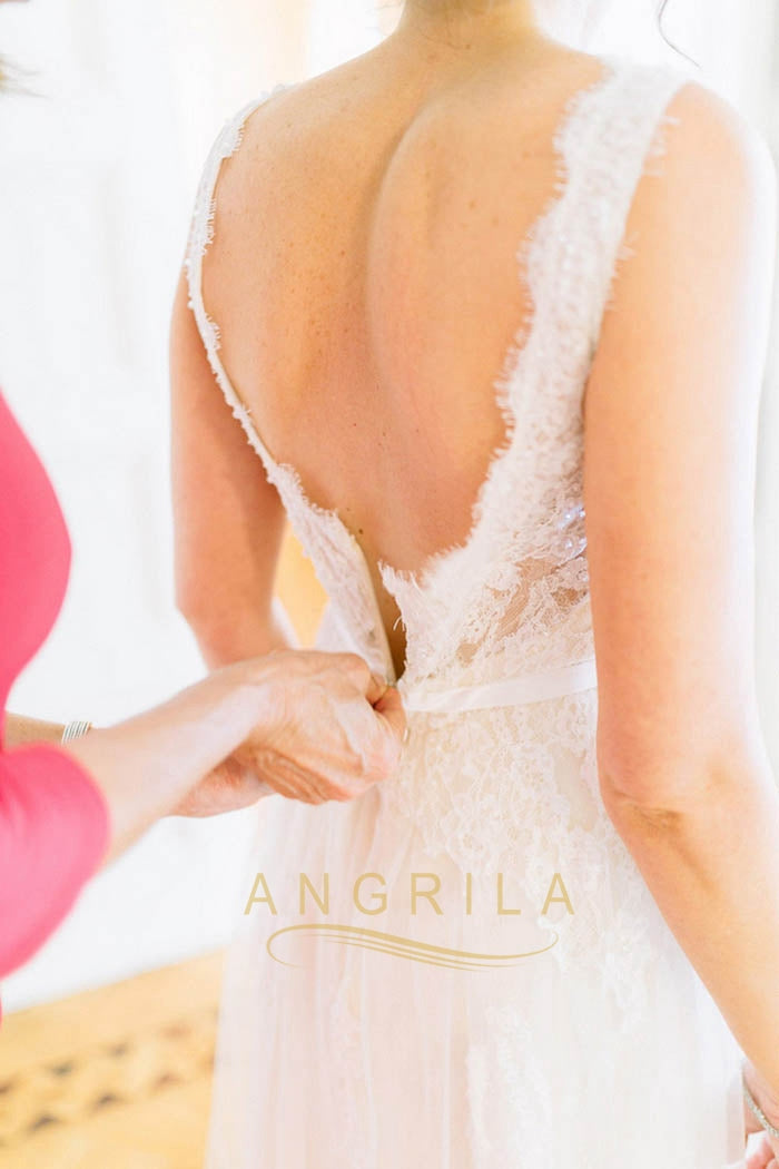 Scoop Neck Lace Wedding Dress with Sleeveless