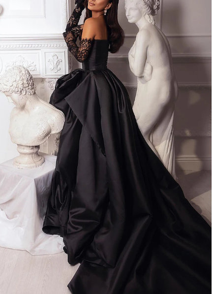 Black Robe De Soiree Mermaid Long Sleeves Appliques Sequins Long Prom Dresses Prom Gown Evening Dresses - Black