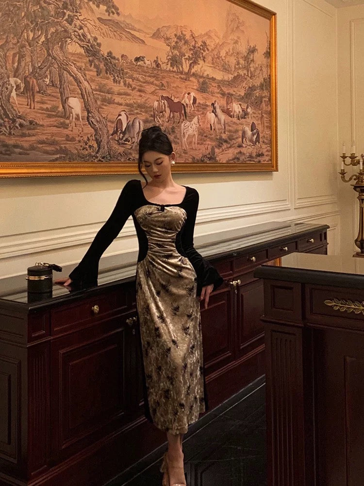 Occasion: Wedding Guest, Formal EveningStyle: Minimalist, VintageSilhouette: Sheath / ColumnHemline / Train: Floor LengthNeckline: V NeckFabric: VelvetClosure: Zipper UPSleeve Length: Long SleeveEmbellishment: Split, DrapingBuilt-In Bra: YesBoning: YesTips: Colors may vary slightly due to different monitor settings, Hand Wash Only