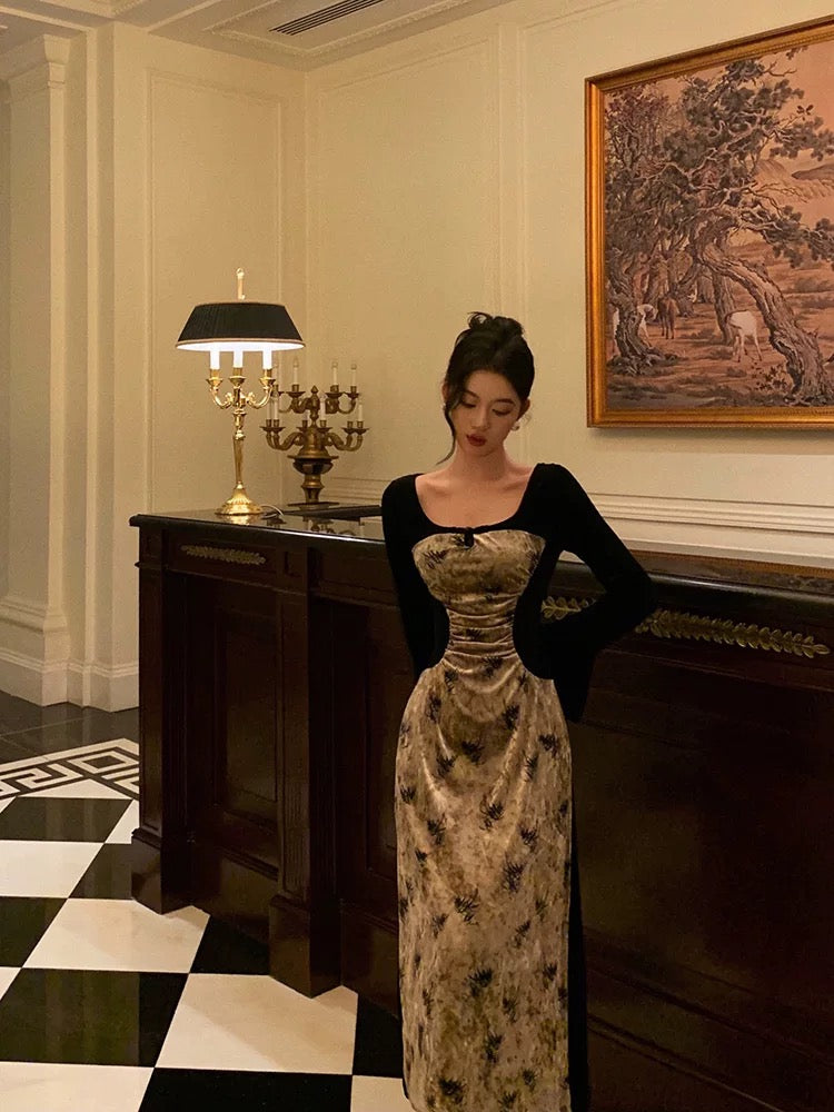 Sexy French A Line Square Neckline Velvet Black Prom Dresses Birthday Outfits Evening Gown SD1050