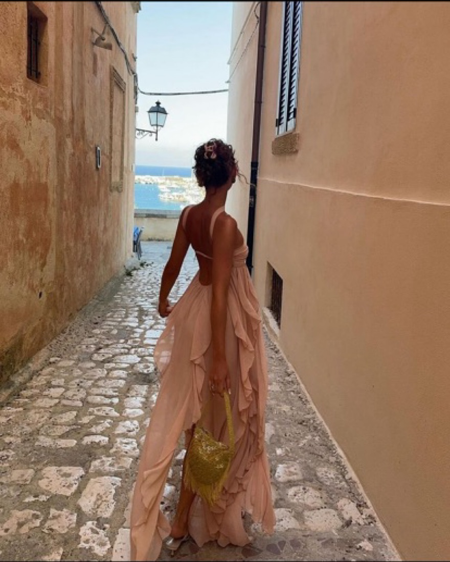 Sexy High Low Sweetheart Pink Chiffon Long Prom Dress Birthday Outfits With Ruffles P2439