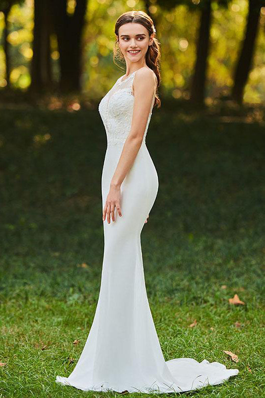 Sexy Mermaid Chiffon Illusion Scoop Neckline Bridal Gowns