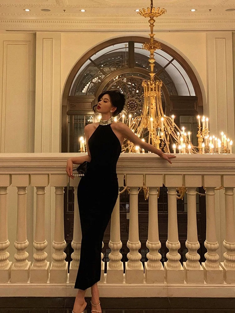 Women's Elegant Sequin Maxi Evening Dress - Black