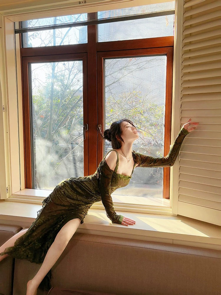 Occasion: Wedding Guest, Formal EveningStyle: Minimalist, VintageSilhouette: Sheath / ColumnHemline / Train: Floor LengthNeckline: V NeckFabric: VelvetClosure: Zipper UPSleeve Length: Long SleeveEmbellishment: Split, DrapingBuilt-In Bra: YesBoning: YesTips: Colors may vary slightly due to different monitor settings, Hand Wash Only