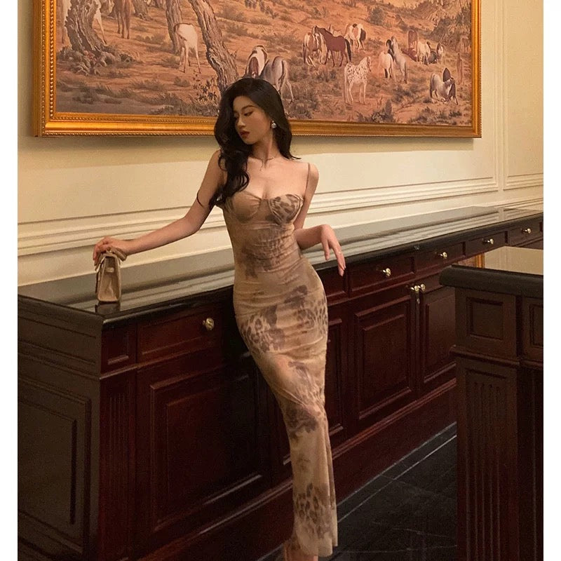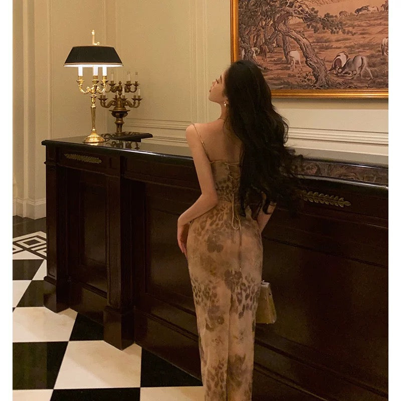 Sexy Sheath Spaghetti Straps Champagne Floral Prom Dresses Birthday Outfits SD754