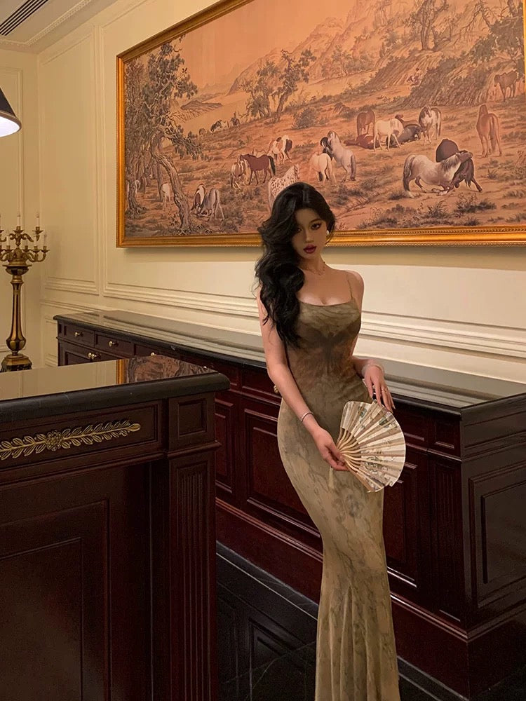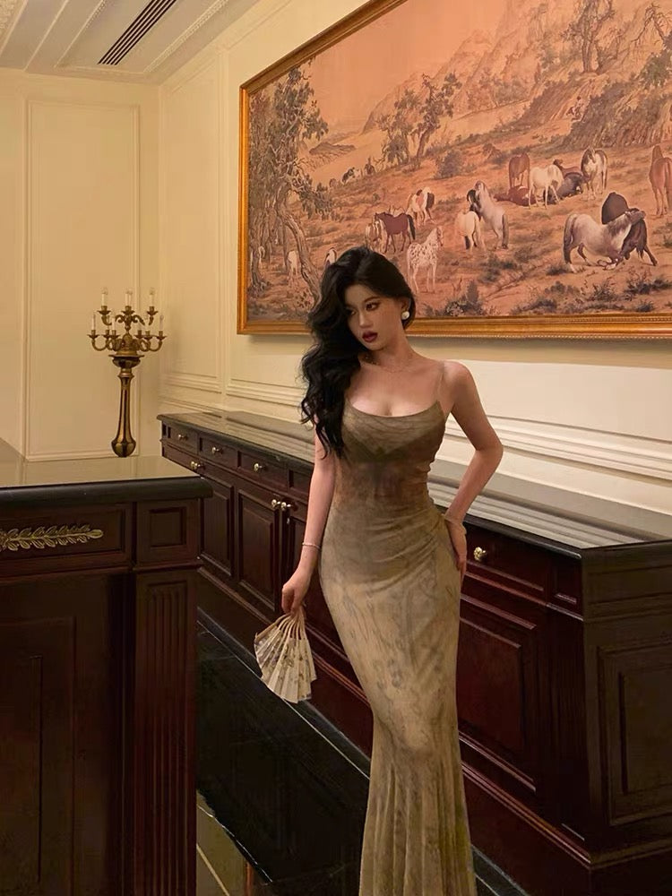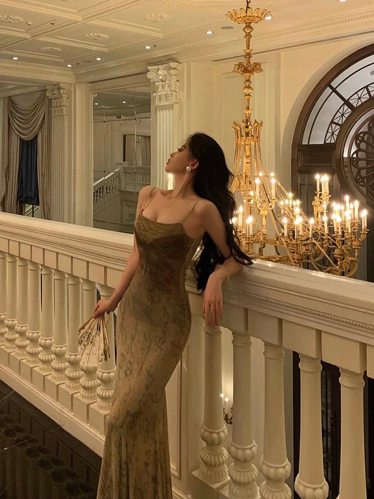 Sexy Sheath Spaghetti Straps Floral Long Prom Dresses Birthday Outfits Evening Gown SD1023