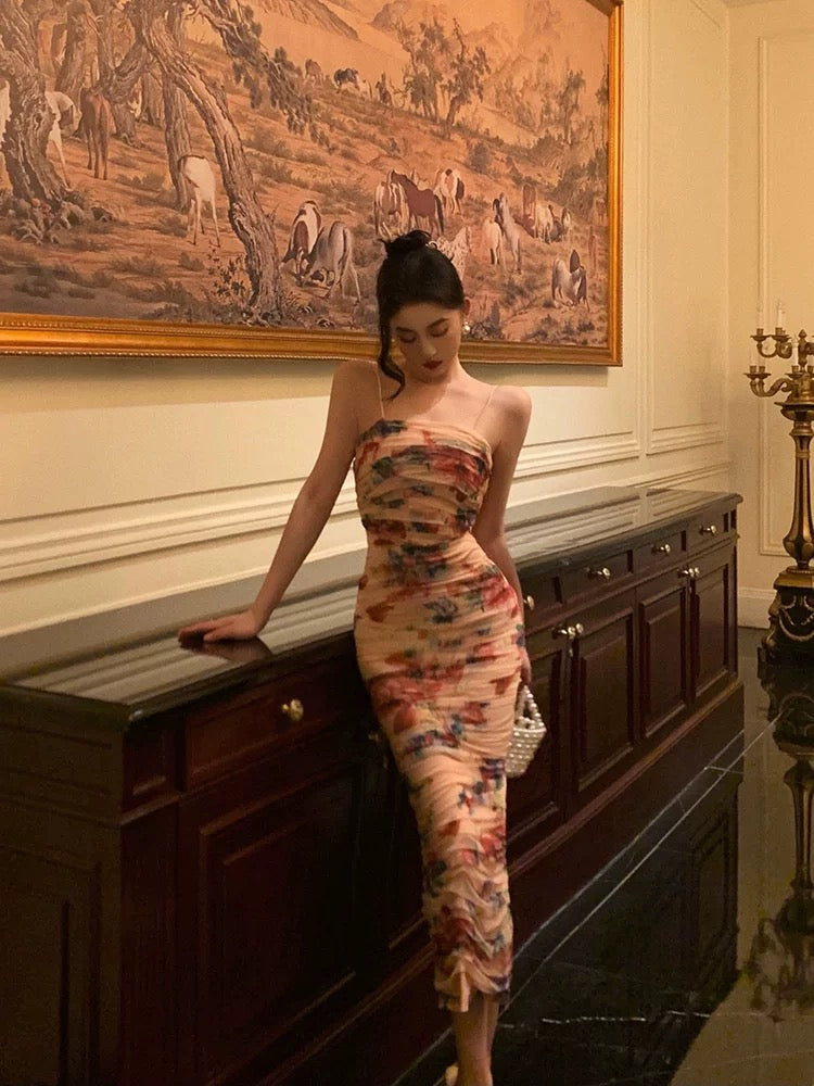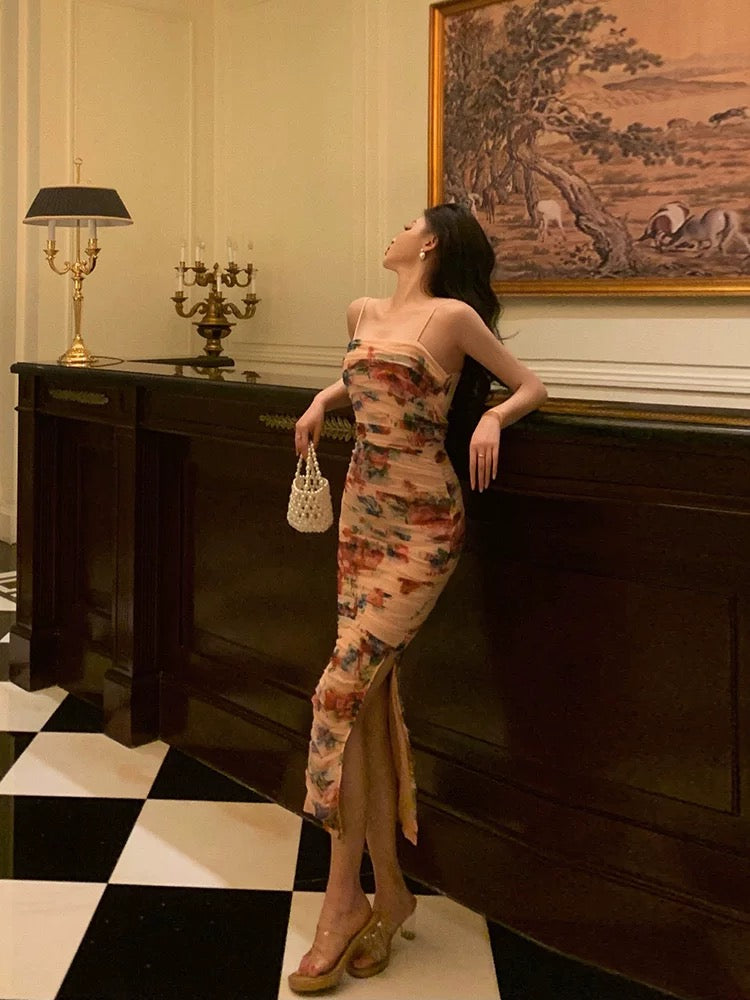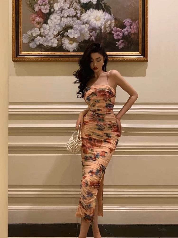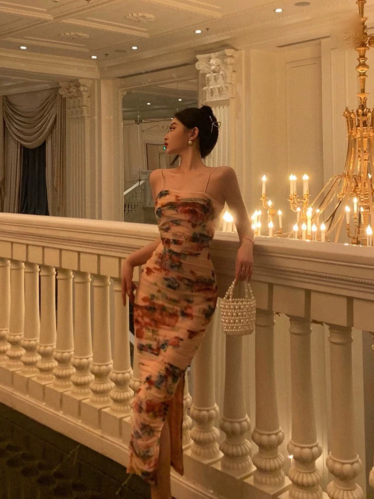 Sexy Sheath Spaghetti Straps Floral Prom Dresses Birthday Outfits Evening Gown SD983