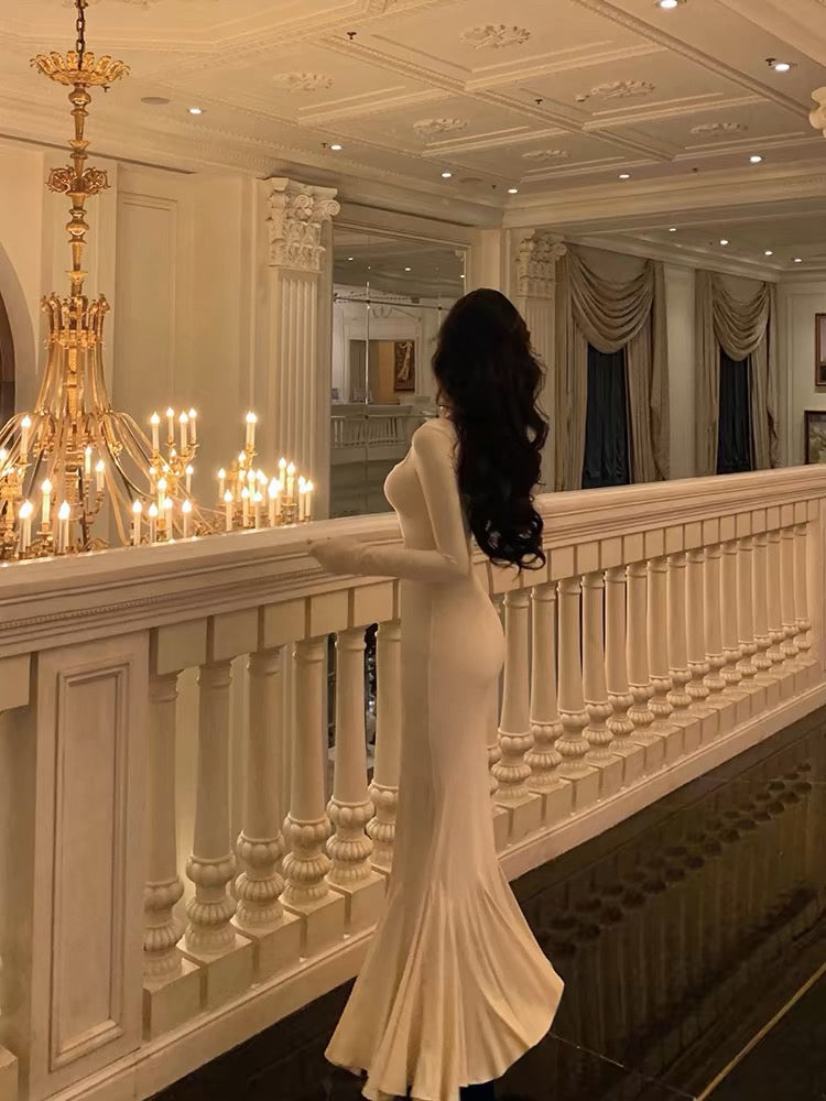 Occasion: Wedding Guest, Formal EveningStyle: Minimalist, VintageSilhouette: Sheath / ColumnHemline / Train: Floor LengthNeckline: V NeckFabric: VelvetClosure: Zipper UPSleeve Length: Long SleeveEmbellishment: Split, DrapingBuilt-In Bra: YesBoning: YesTips: Colors may vary slightly due to different monitor settings, Hand Wash Only