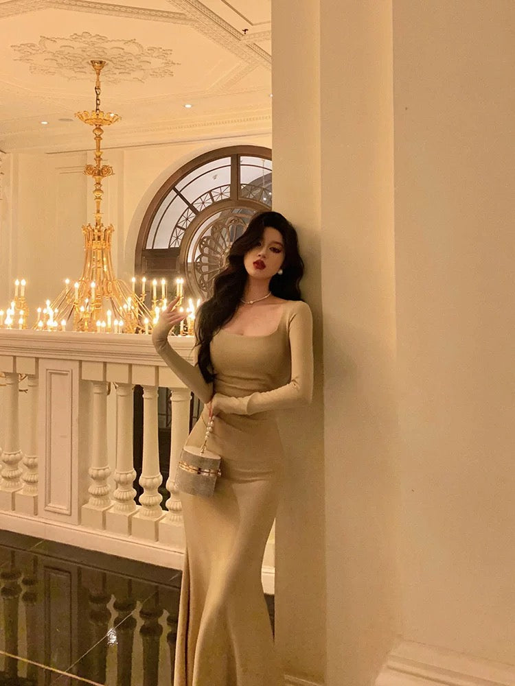 Sexy Sheath Square Neckline Long Prom Dresses Birthday Outfits Evening Gown SD1038