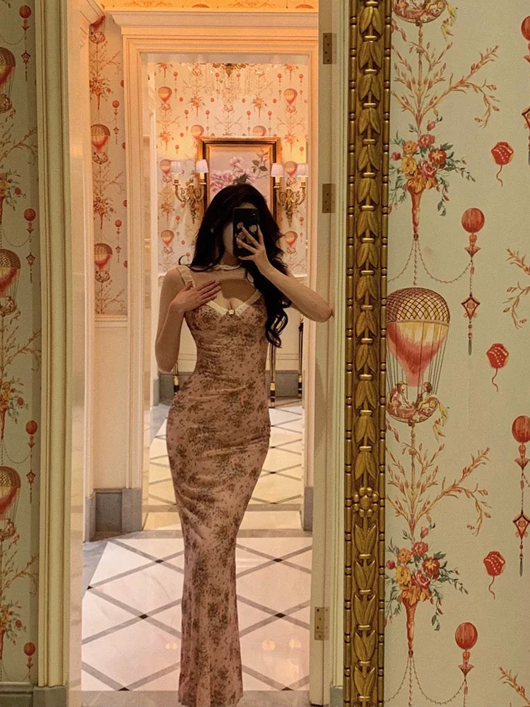 Sexy Sheath Straps Pink Floral Prom Dresses Long Birthday Outfits Evening Gown SD928
