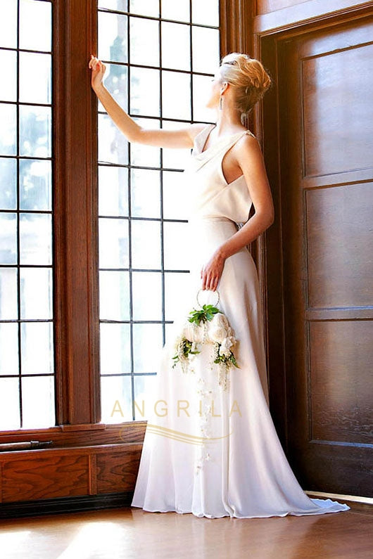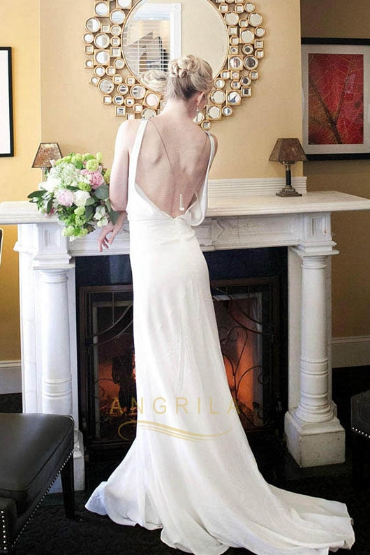 Style: Simple Neckline: V-neck Sleeve Length(cm): Short Wedding Dress Fabric: Satin Train: Chapel Train Origin: CN(Origin) For Pregnant Women: Yes Dresses Length: Floor-Length Back Design: Backless Item Type: Wedding Dresses Sleeve Style: Regular Built-in Bra: Yes is_customized: Yes Decoration: Pleat Fashion Element: simple Waistline: Natural Factors Silhouette: Ball Gown