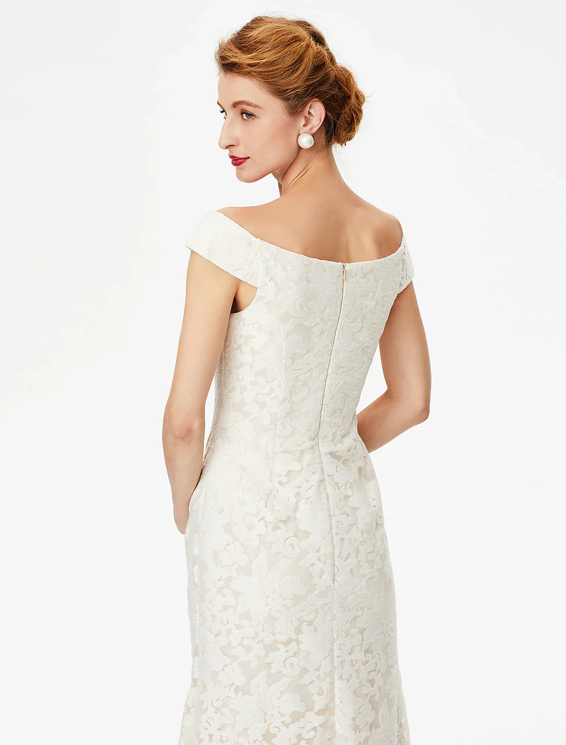 Sheath / Column Mother of the Bride Dress Elegant Off Shoulder Floor Length Lace Short Sleeve No with Lace