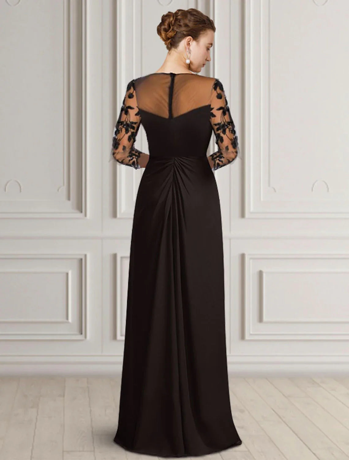 Sheath / Column Mother of the Bride Dress Fall Wedding Guest Dresses Elegant Jewel Neck Floor Length Chiffon Lace 3/4 Length Sleeve with Appliques