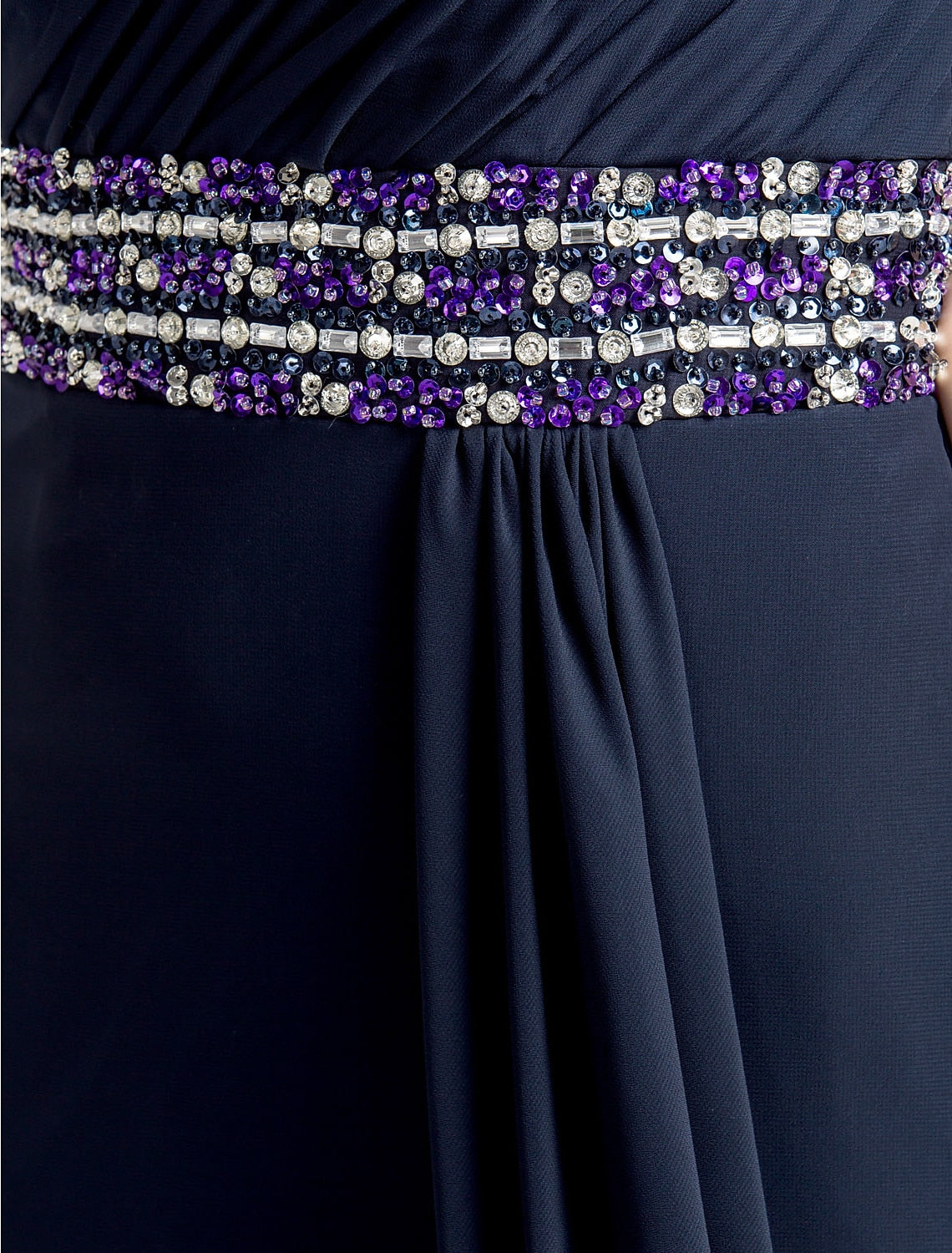 Sheath / Column Mother of the Bride Dress Sparkle & Shine One Shoulder Floor Length Chiffon Short Sleeve with Beading Draping Side Draping