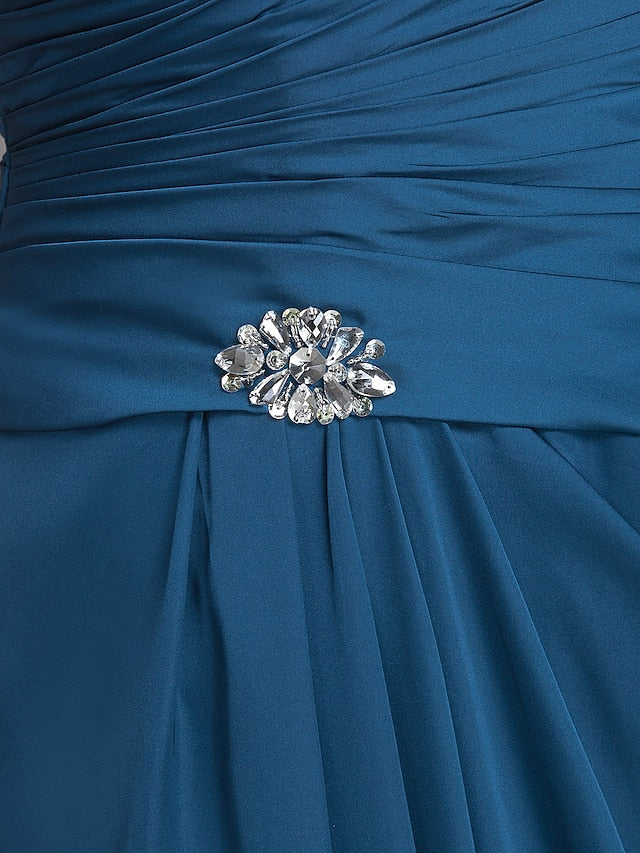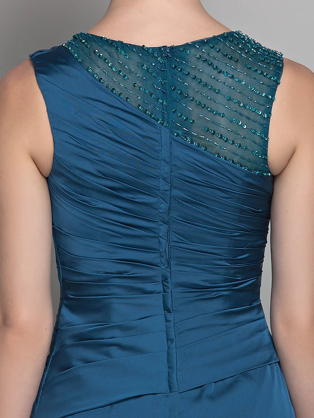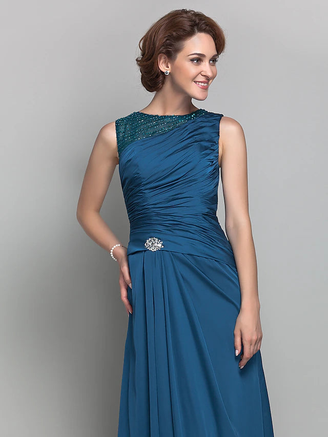 Sheath / Column Mother of the Bride Dress Vintage Inspired Jewel Neck Floor Length Satin Chiffon Sleeveless with Beading