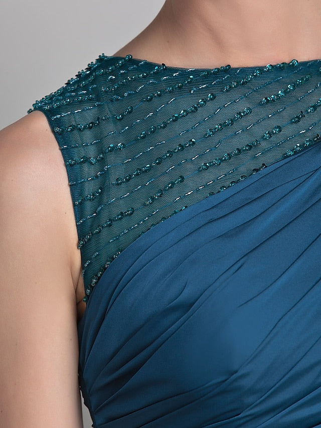 Sheath / Column Mother of the Bride Dress Vintage Inspired Jewel Neck Floor Length Satin Chiffon Sleeveless with Beading