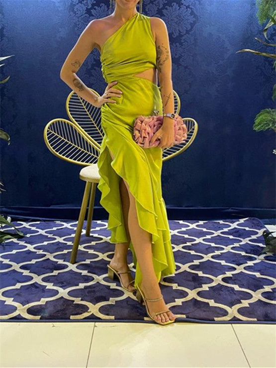 Sheath/Column One-Shoulder Floor-Length Prom Dresses Pure Color Sexy