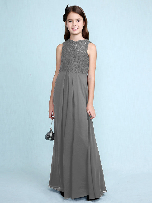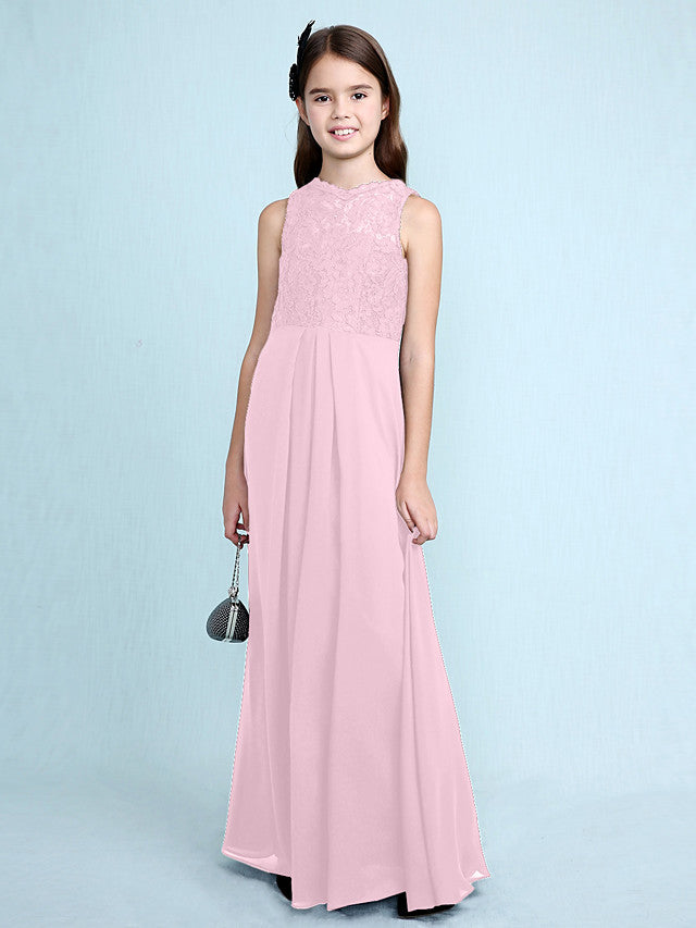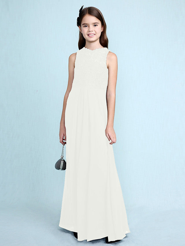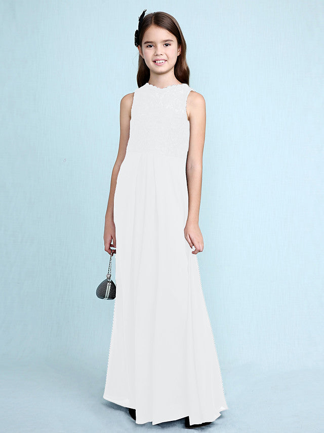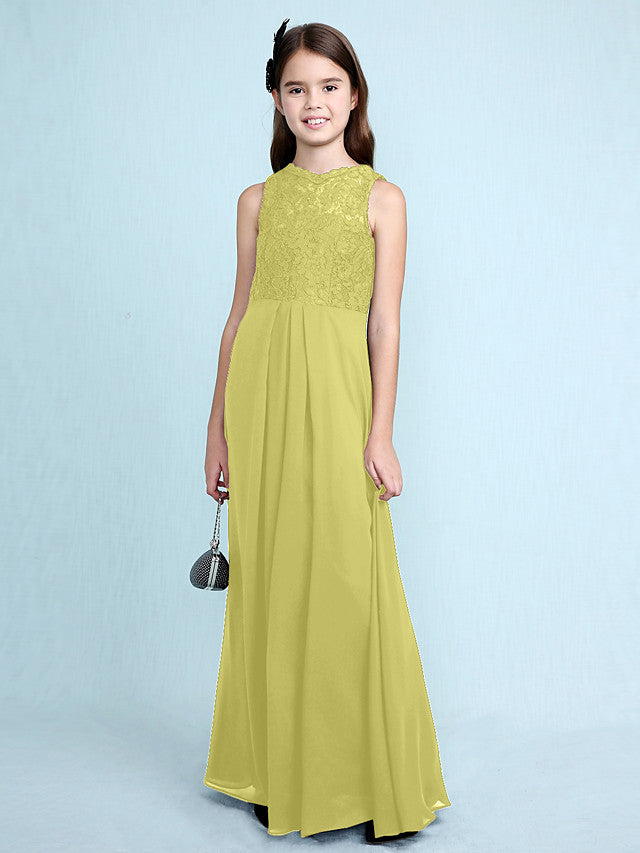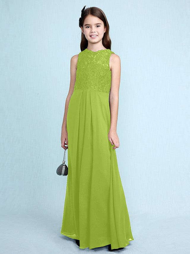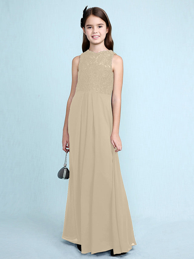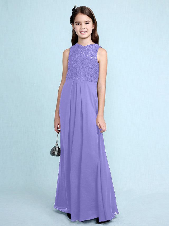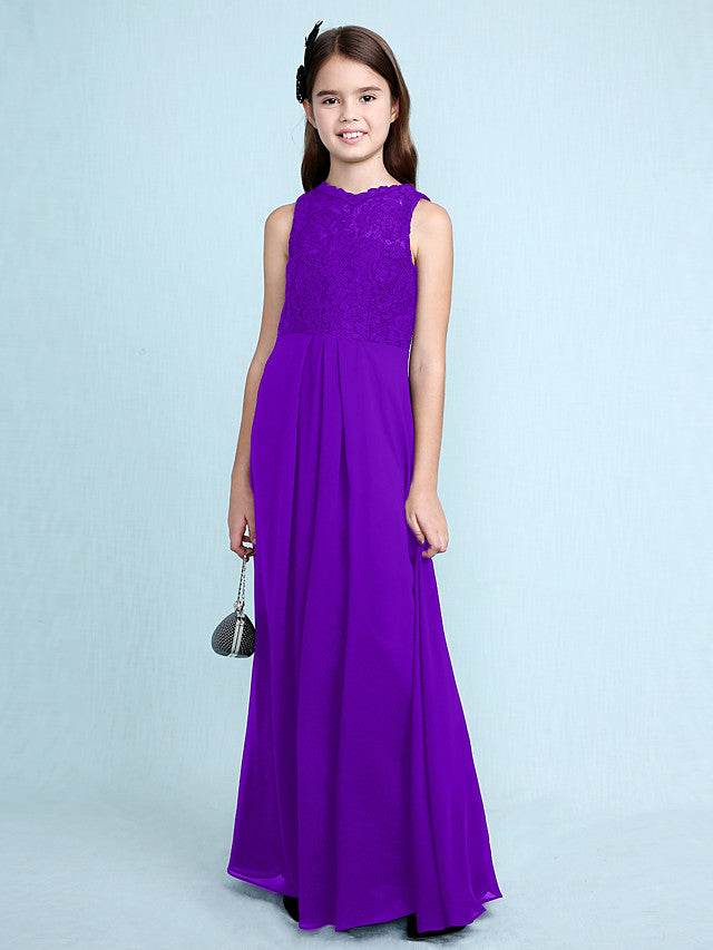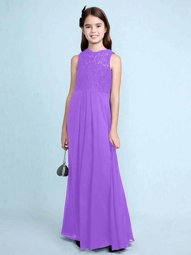 Sheath Column Scoop Neck Floor Length Chiffon & Lace Junior Bridesmaid Dress